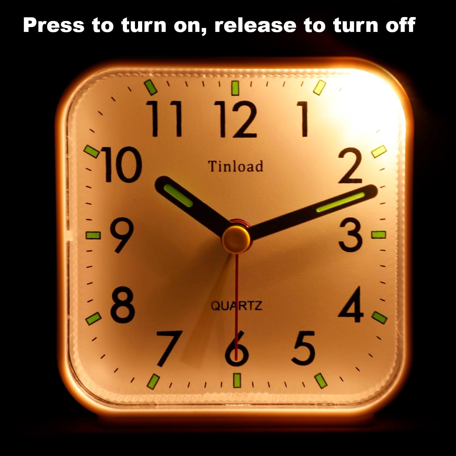 Small Battery Operated Analog Travel Alarm Clock Silent Non Ticking, Gentle Wake, Ascending Beep Sounds, Snooze,Lighted on Demand, Easy Set(White)