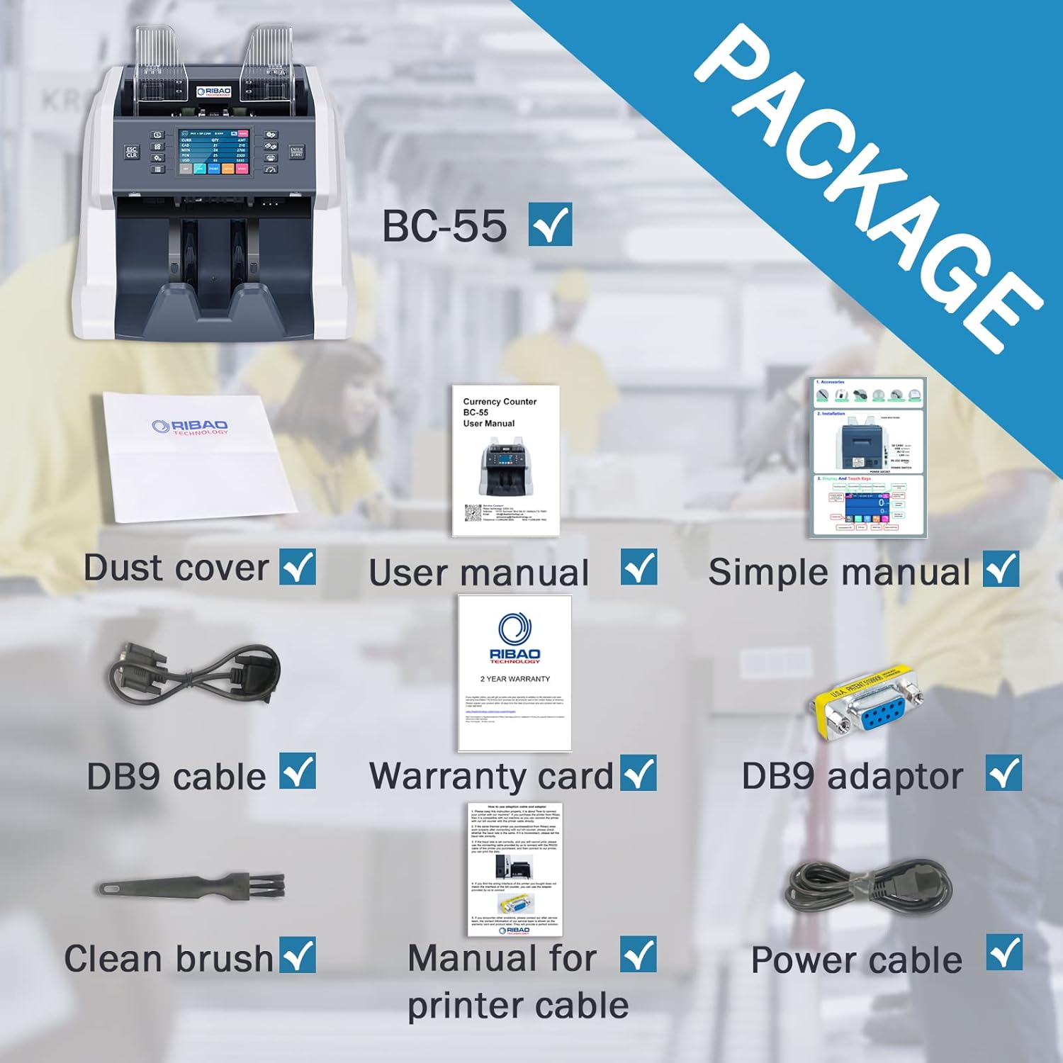 RIBAO BC-55 Premium Bank Grade Money Counter Machine Multi Currency Mixed Denomination Bill Cash Value Counter 2 CIS/UV/MG/MT/IR Serial Number Recording FCC Approved