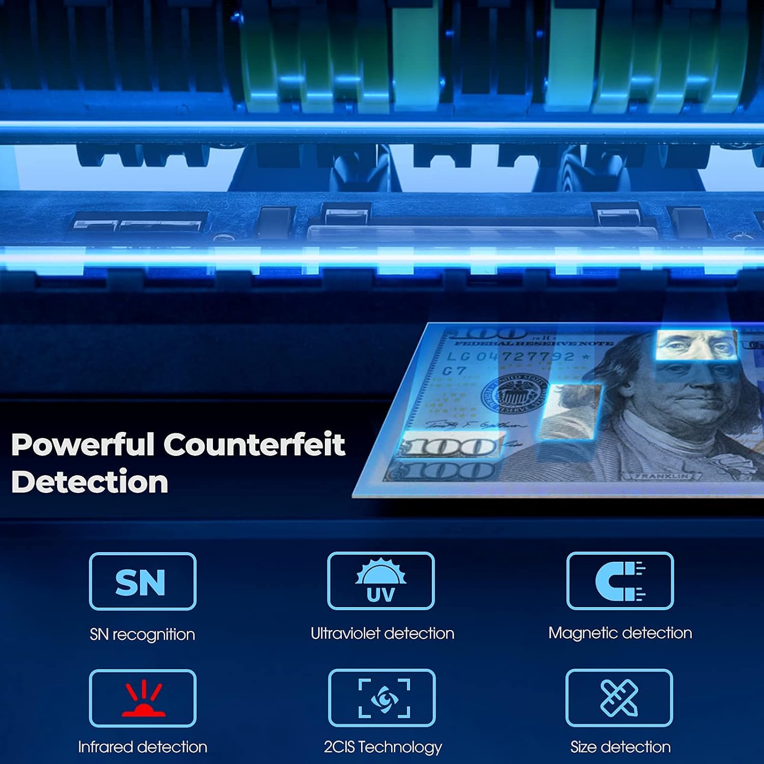 - Bank Grade Counterfeit Detection and Authentication: Compared with common UV MG sensor detection, BC-55 applied atest image processing technology and premium althorithm. One pair of high resolution CIS(contact image sensor) scan and detect 2 sides of each counted bill like human eyes, no headache about superdollar, protect your business from loss and provide you with a smooth counting experience.