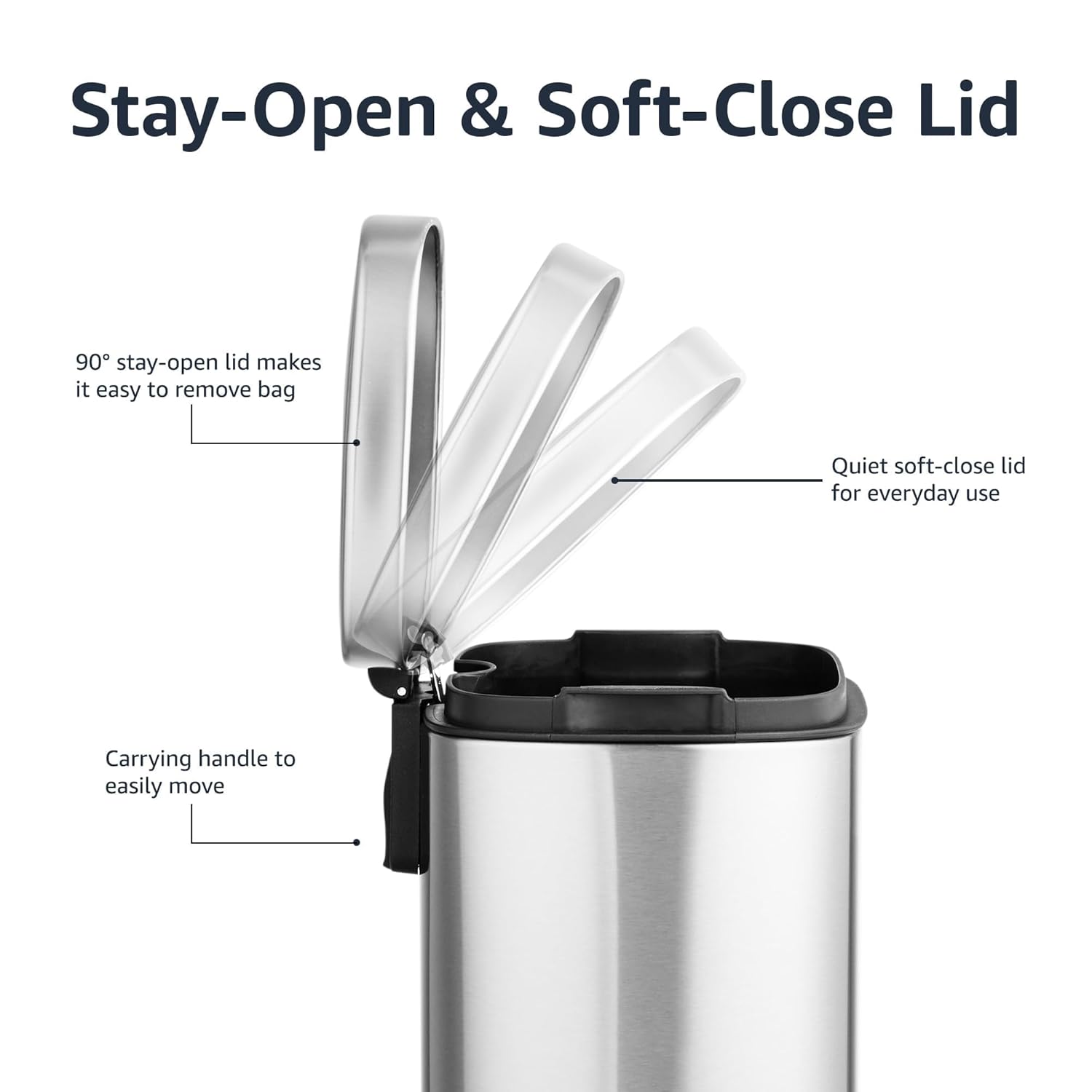 - EVERYDAY USE: Stay-open lid, removable bucket, and carry handle ensure easy, convenient trash disposal