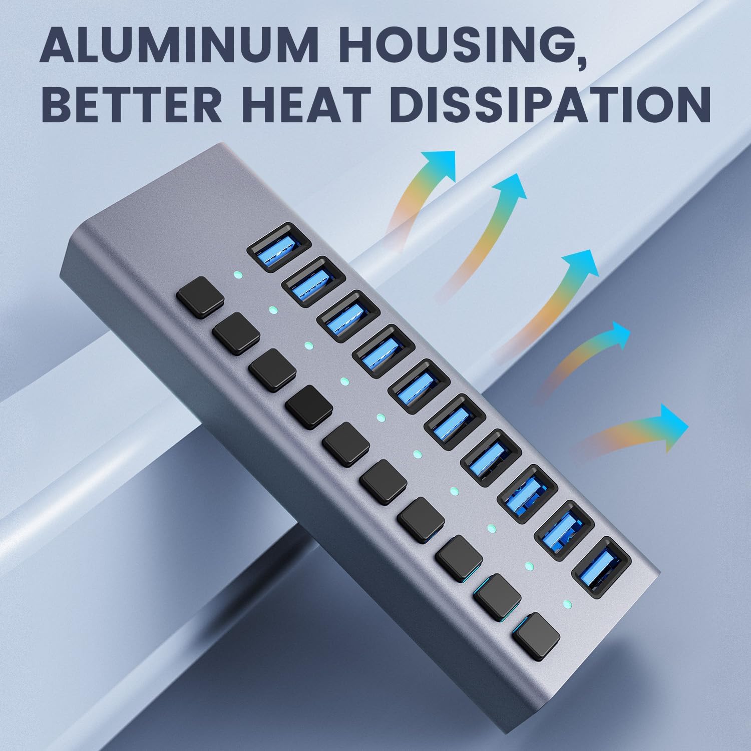- Solid Aluminum Structure: Built-in surge protector keeps your devices and data safe and supports hot swapping. The metal adds some weight, making it more difficult for the unit to be dragged along by any USB cables plugged into it.