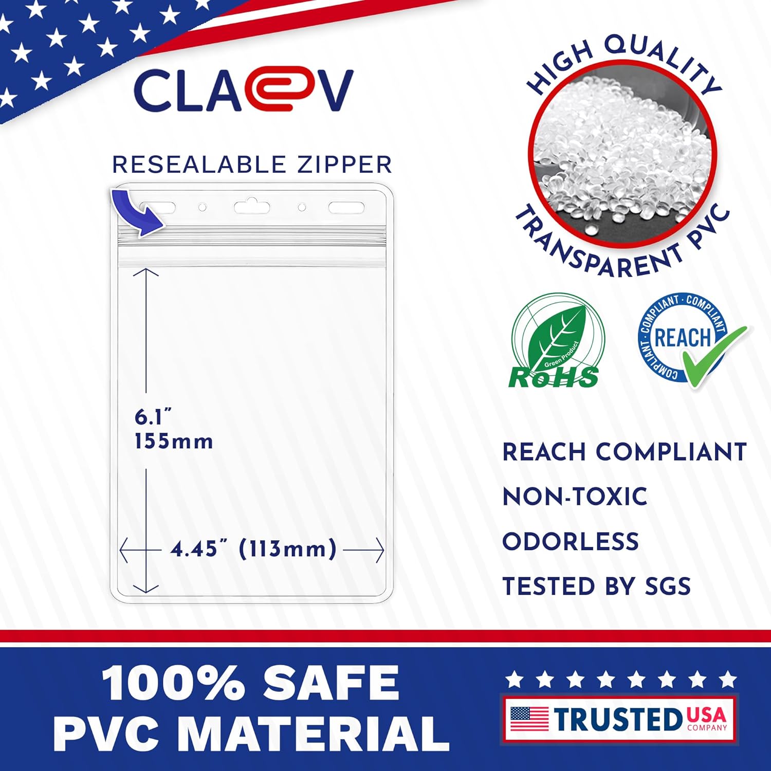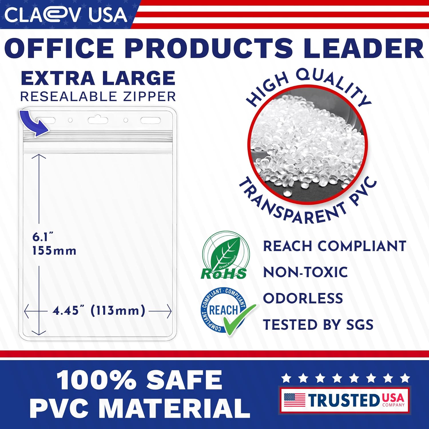 Claev Fast Seal Vertical 4x6 Passport & Card Holders (4x6 Extra Large (XXL), 100 Pack), Clear Waterproof ID Plastic Name Card Badge Holders for Travel, Conferences, Conventions