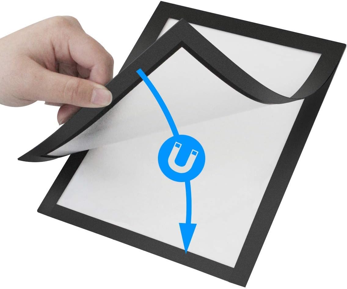 Document Sign Holder Pockets with Magnetic Back, Plastic Poster Picture Notice Display Frame for Fridge/Whiteboard/Chalkboard/Cabinet, 8.5 x 11.6 Inches, Black, 30 Pcs