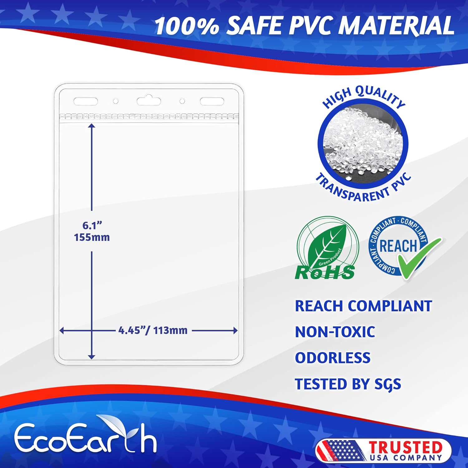 EcoEarth Passport & Identification Card Holders with Soft Edge (Clear, 4x6 Inch, 250 Pack), Extra Large Vertical ID Holder, Zipperless Plastic Name Badge Holders