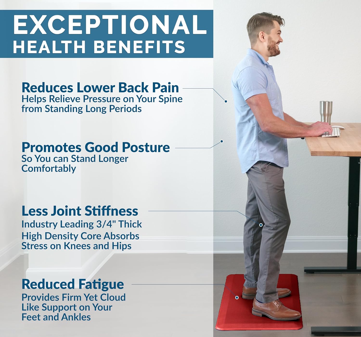 - Easy to Clean and Maintain: Simply wipe down the standing desk mat or anti-fatigue kitchen mat with a damp cloth for quick and easy maintenance, keeping your space clean and comfortable.