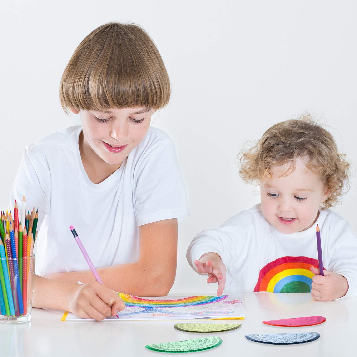 - Assorted colors and good quality: the protractor made of good quality plastic; Assorted color allow you see the words, letters, figures on page through the protractor