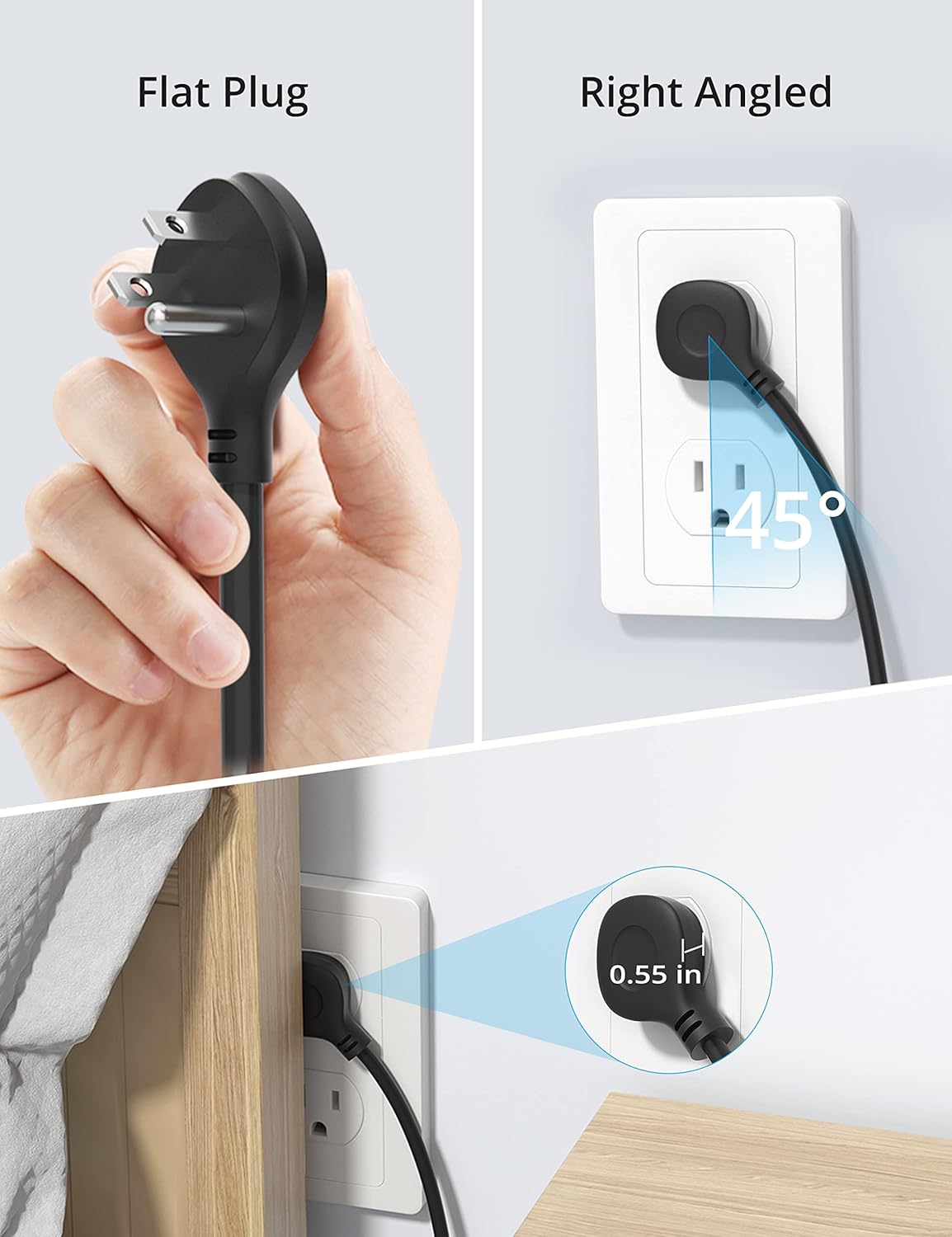 - Power Strips with Surge Protection: This ETL-listed power strip is made from top-grade UL94 V-0 flame-retardant material. With 1300J surge protection, it safeguards your TV, computer, phone, and office equipment from potentially damaging power surges, providing peace of mind