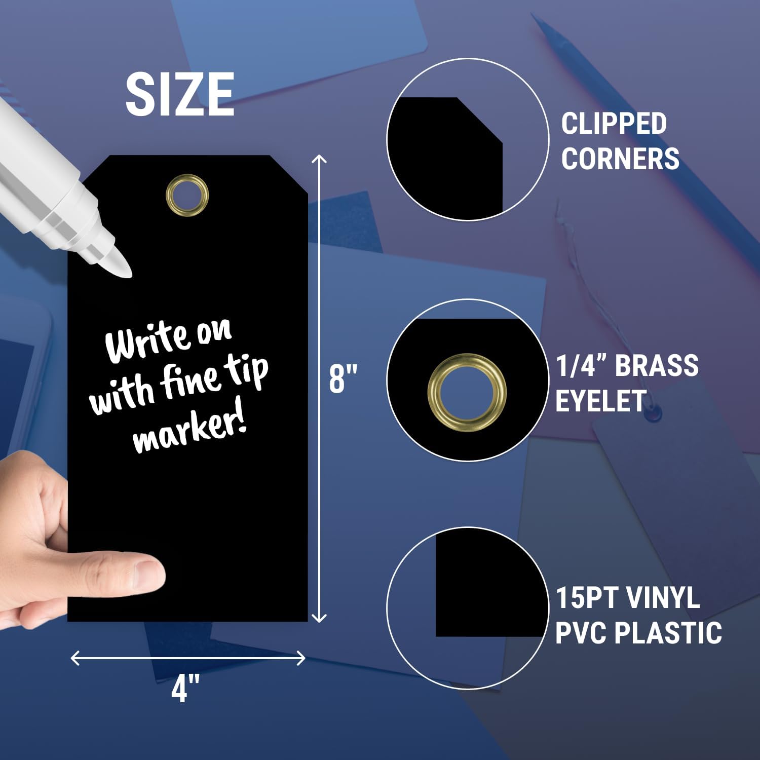 Tags 4 Less 15 Mil Waterproof Plastic Tags, Pack of 100 – 4” x 8” Heavy Duty Plastic Tags for Labeling, Outdoor Tagging, Equipment Labeling, Luggage, Valves & More (Black)