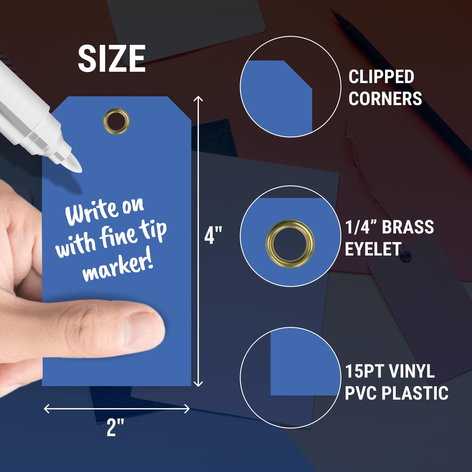 - Material : 15pt Vinyl PVC Plastic Tag