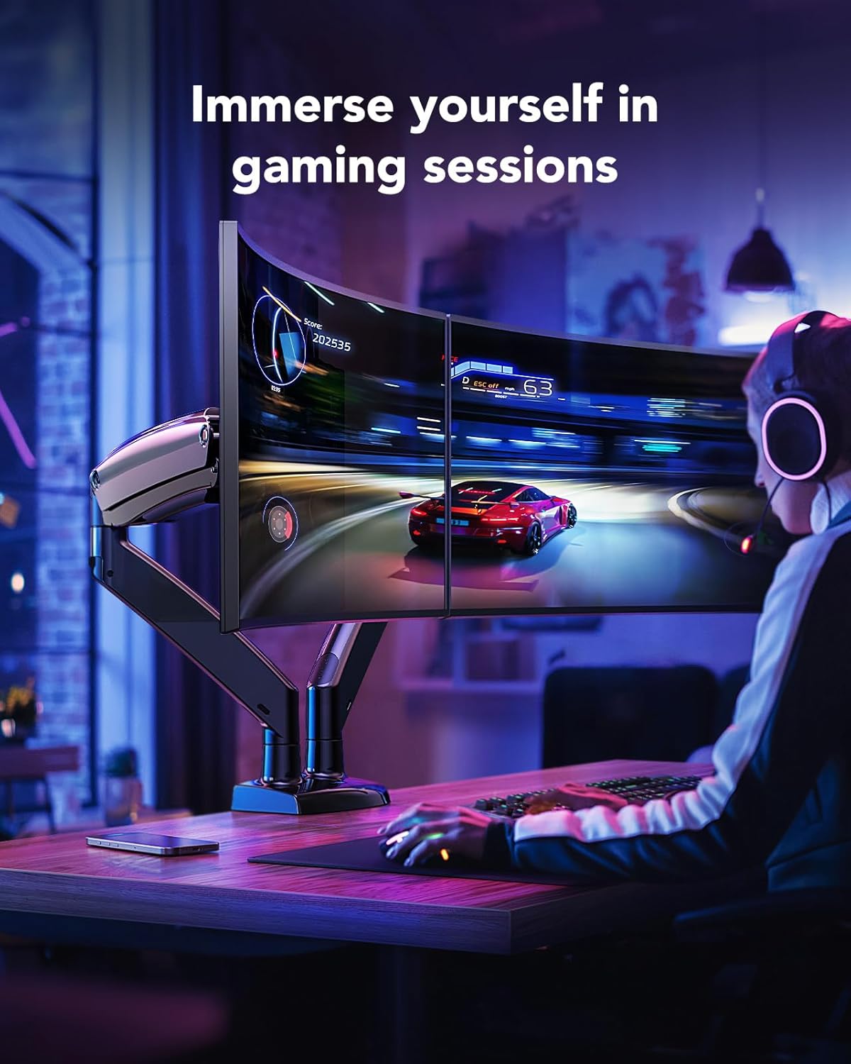 - Increased Stability for Heavier Ultrawide Monitors - The upgraded base and large arms make this dual monitor stand more stable so it can securely hold two 13”-40” screens weighing up to 26.4lbs. Compatible with VESA 75x75mm and 100x100mm.