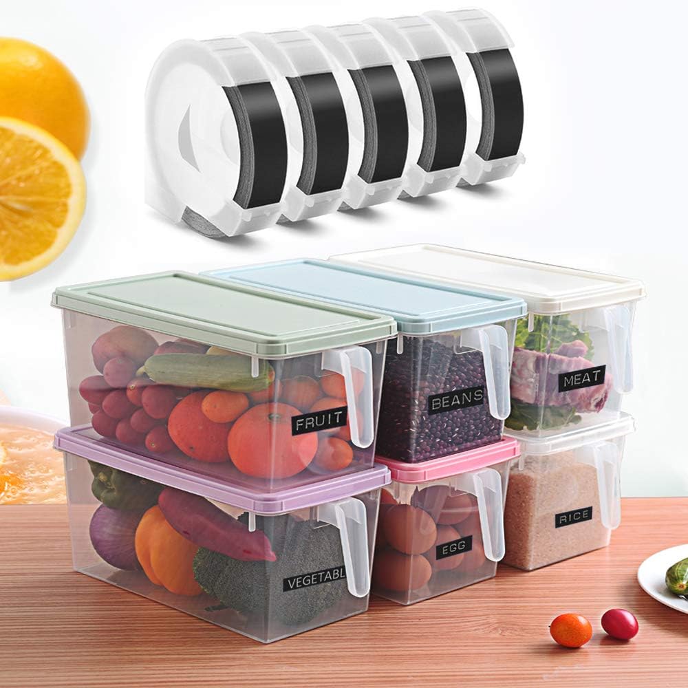 - Package inclues: 5 Pack 3/8-inch x 9.8-foot roll, white print on black tape