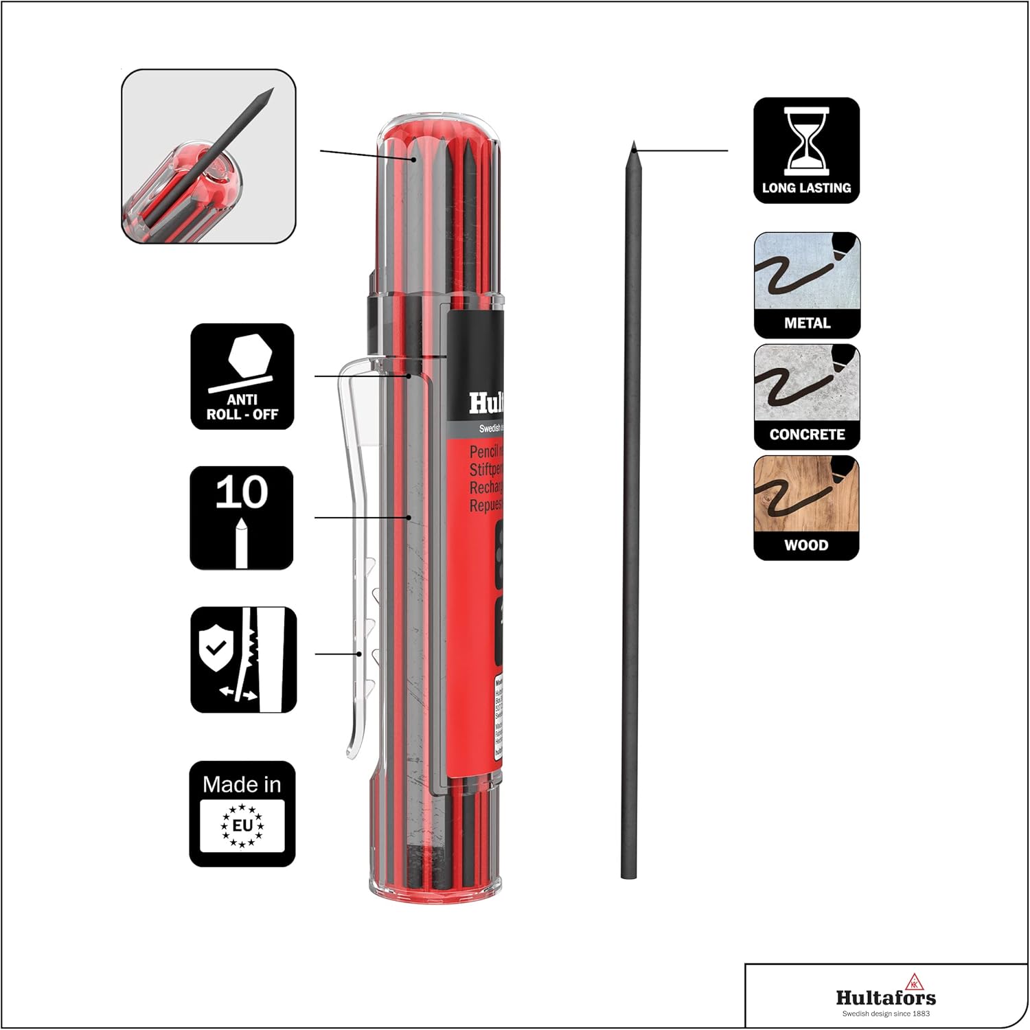 - Refill with 10 leads for use with the Hultafors Dry-Marker HDM.