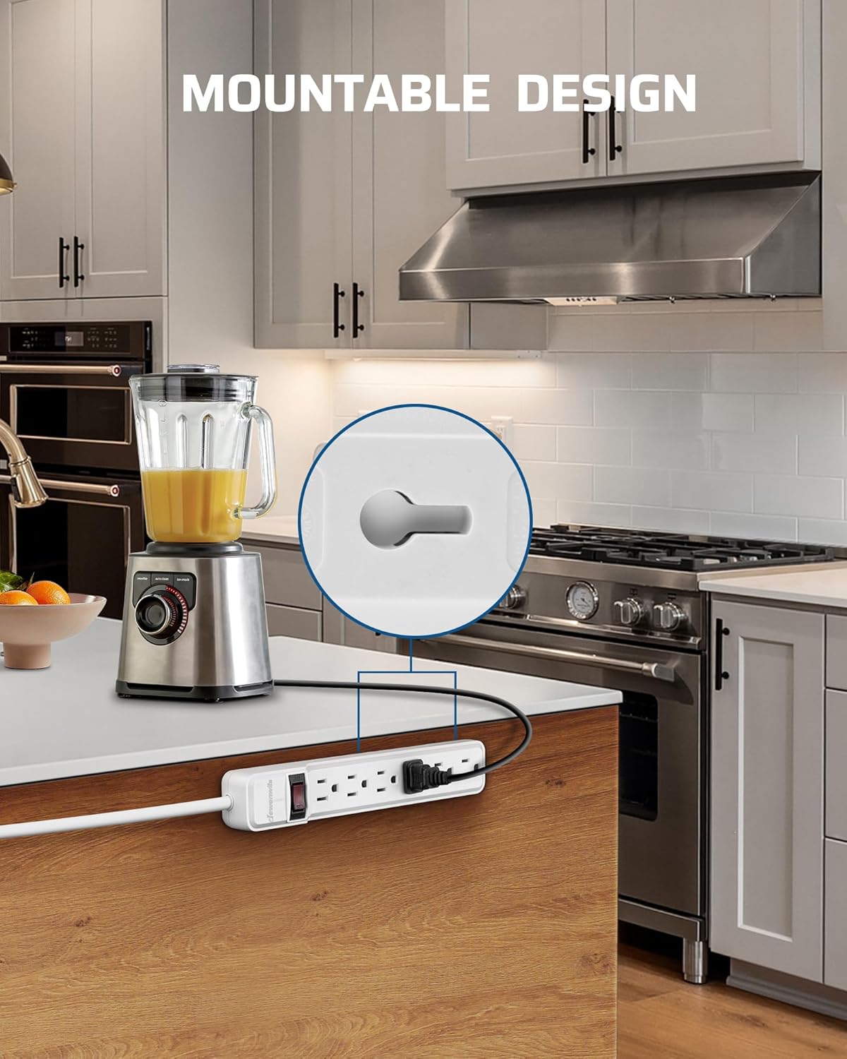 - 【 Wall Mountable 】Wall mount 6 outlet surge protector power strip has 2 keyhole mounting slots on the back, providing convenient wall mounting options; it can also be mounted to the workbench or under a desk