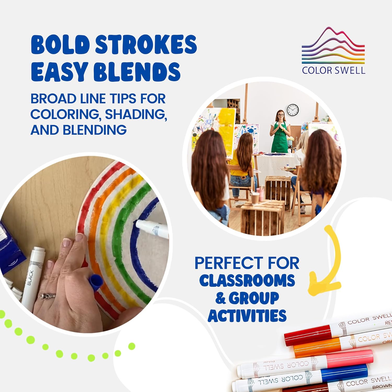 - KID SAFE WASHABLE BULK BROADLINE MARKERS - All Color Swell Bulk Markers class sets are non-toxic, washable and conform to ASTM D-4236 and EN71 standards. Perfect bulk washable markers in bulk for kids age 3+.