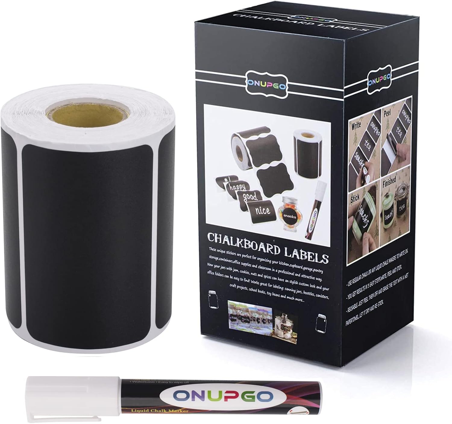 ONUPGO Chalkboard Labels-180pcs Waterproof Reusable Blackboard Stickers with 1 Liquid Chalk Marker for Mason Jars, Parties Decoration, Craft Rooms, Weddings, Storage, Organize Your Home & Kitchen