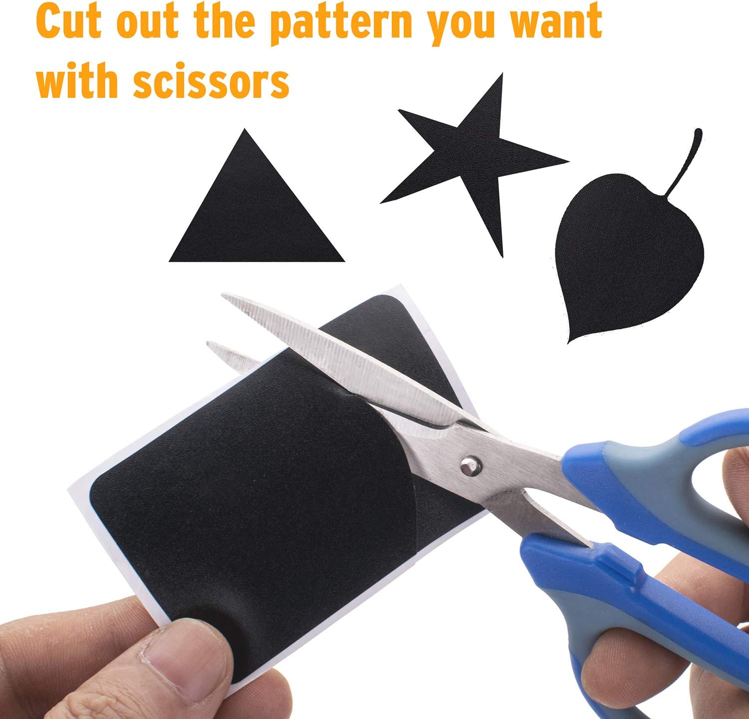 - COMPLETE SET YOU CAN FIND: A roll of 180 chalkboard labels ( 2" x 2.95" ) with a white chalk marker. Reasonable size let you can cut these blackboard labels into different shapes, custom personalized sticker labels use as glass bottle labels for eye-catching table numbers for wedding, or as decorative slate stickers for a standout dessert buffet. Chalkboard labels are a must-have decorate for all special occasions.