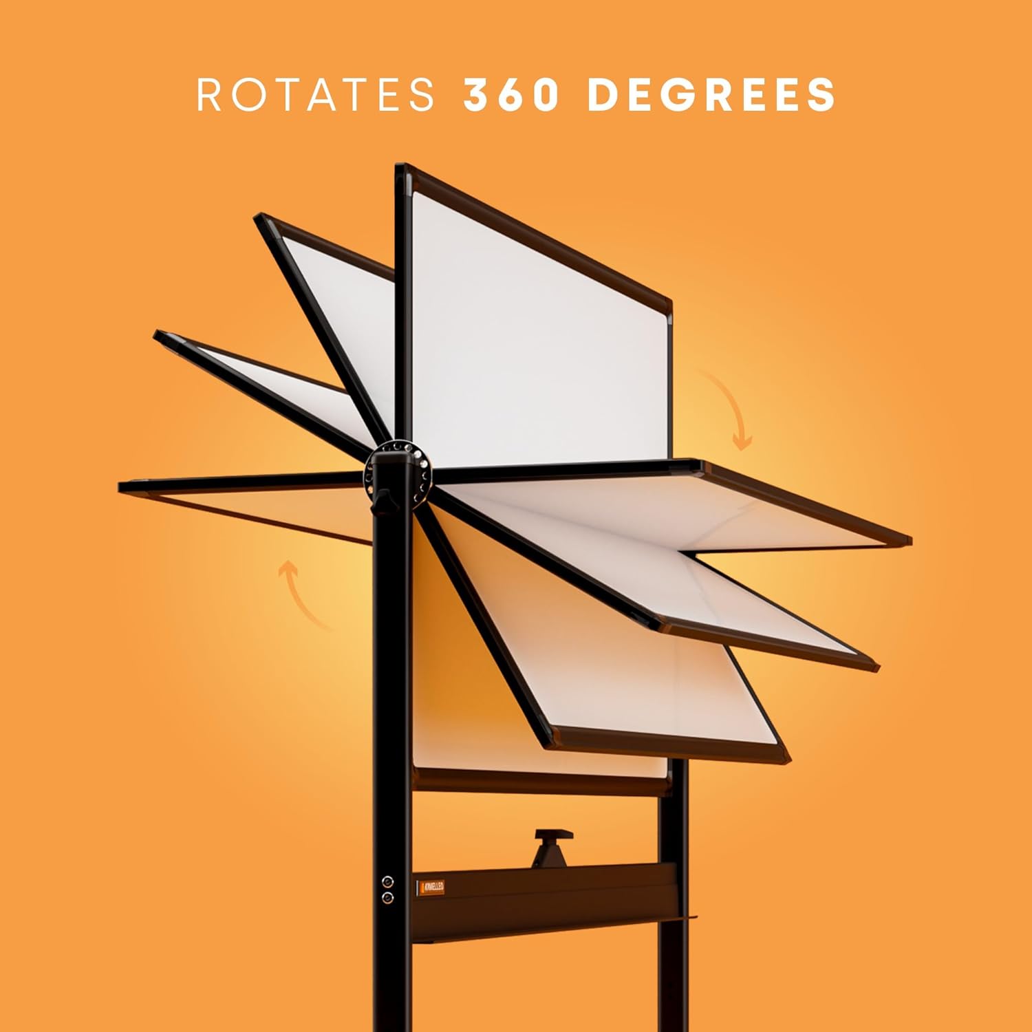 - Easy to Move and Adjust: Our mobile whiteboards feature Swing-Stop wheels and an easel frame that can be locked in place to maximize stability. The double-sided easel stand can easily flip to maximize whiteboard space and the dry erase boards feature magnetic surfaces, which allow you to easily organize accessories.