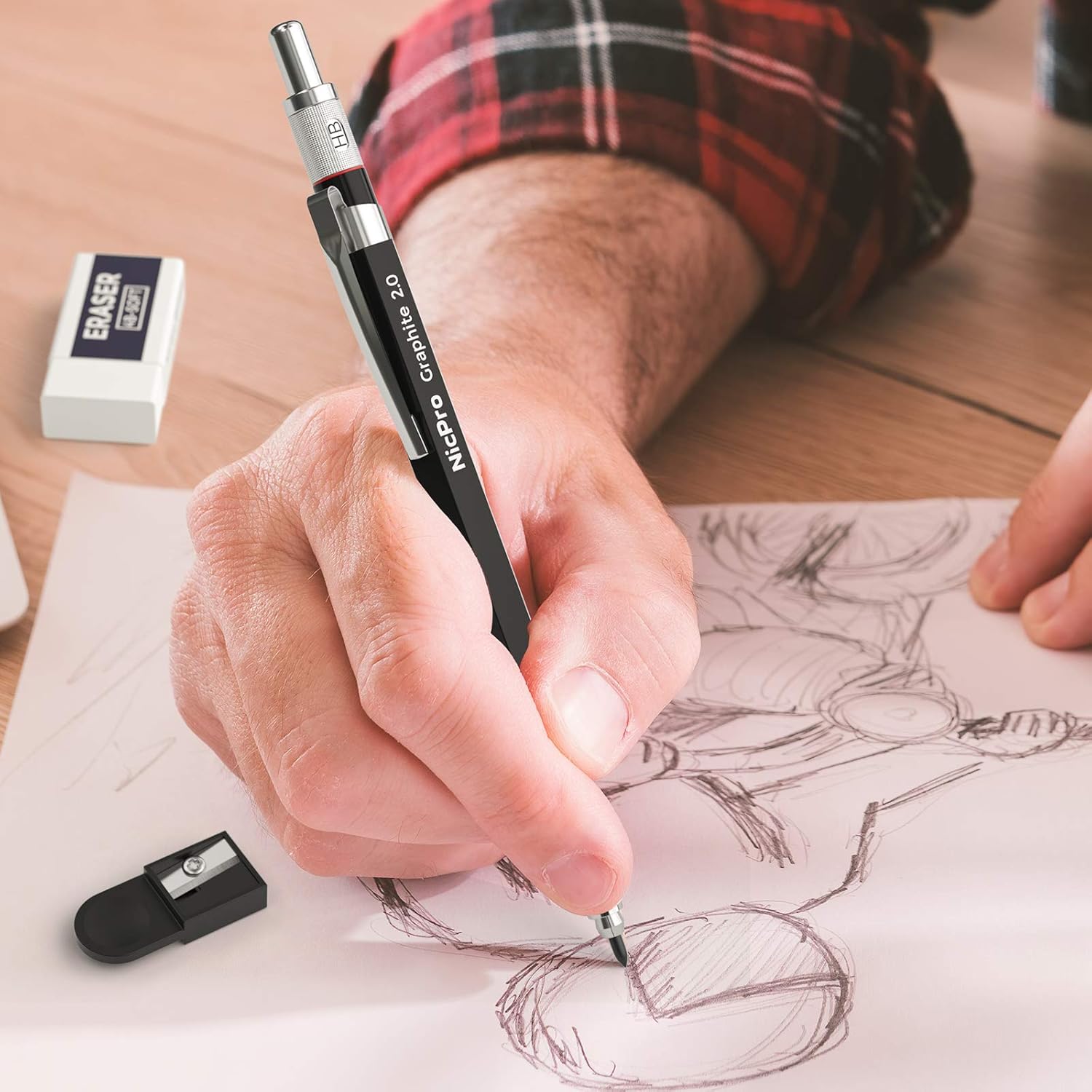 - Value Package: Come with 2pcs 2.0mm mechanical pencils,10 tube of pre-sharpen lead refill (HB, 2H, 2B, 4B, 4H) & red, blue lead, 120pcs refill in total, 2pcs eraser and 2 pcs lead sharpener. Each Lead is 2.0 mm wide, 120 mm tall, carbon based