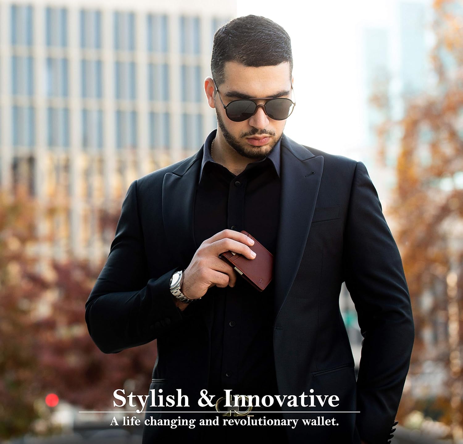• Stylish & Practical - Functionality at its Best. A wallet that will meet your everyday needs and fits in your pocket without bulging. Two convenient outside card slots made for your most used cards, instantly have the cards you need to save time and energy. Photo ID slot located on the outside of the wallet, a smart solution to instantly access your ID. Innovative stainless steel money clip securely holds up to 15 bills, quick payments and organization made easy