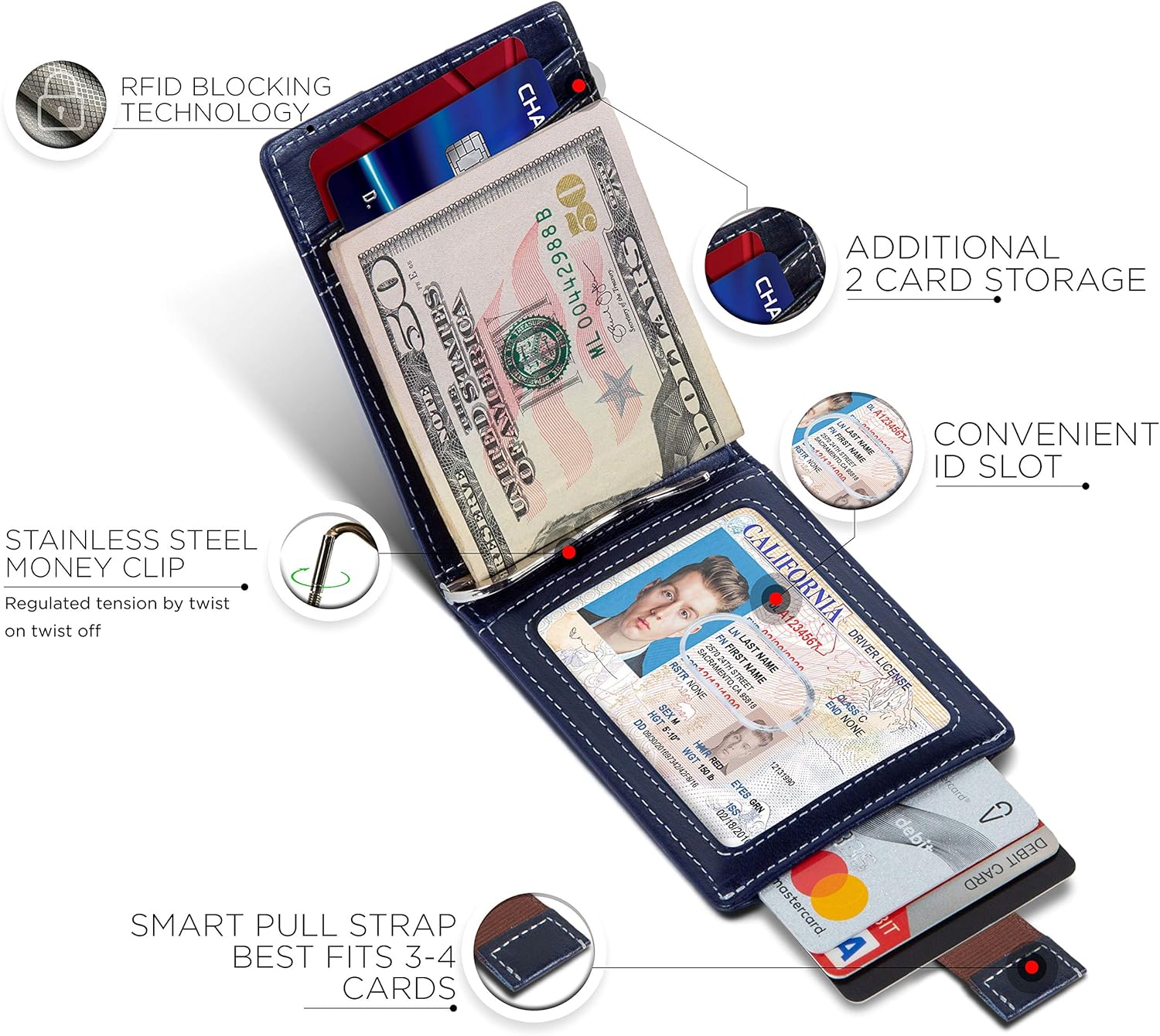 SERMAN BRANDS RFID Blocking Slim Bifold Genuine Leather Minimalist Front Pocket Wallets for Men with Money Clip Thin Mens