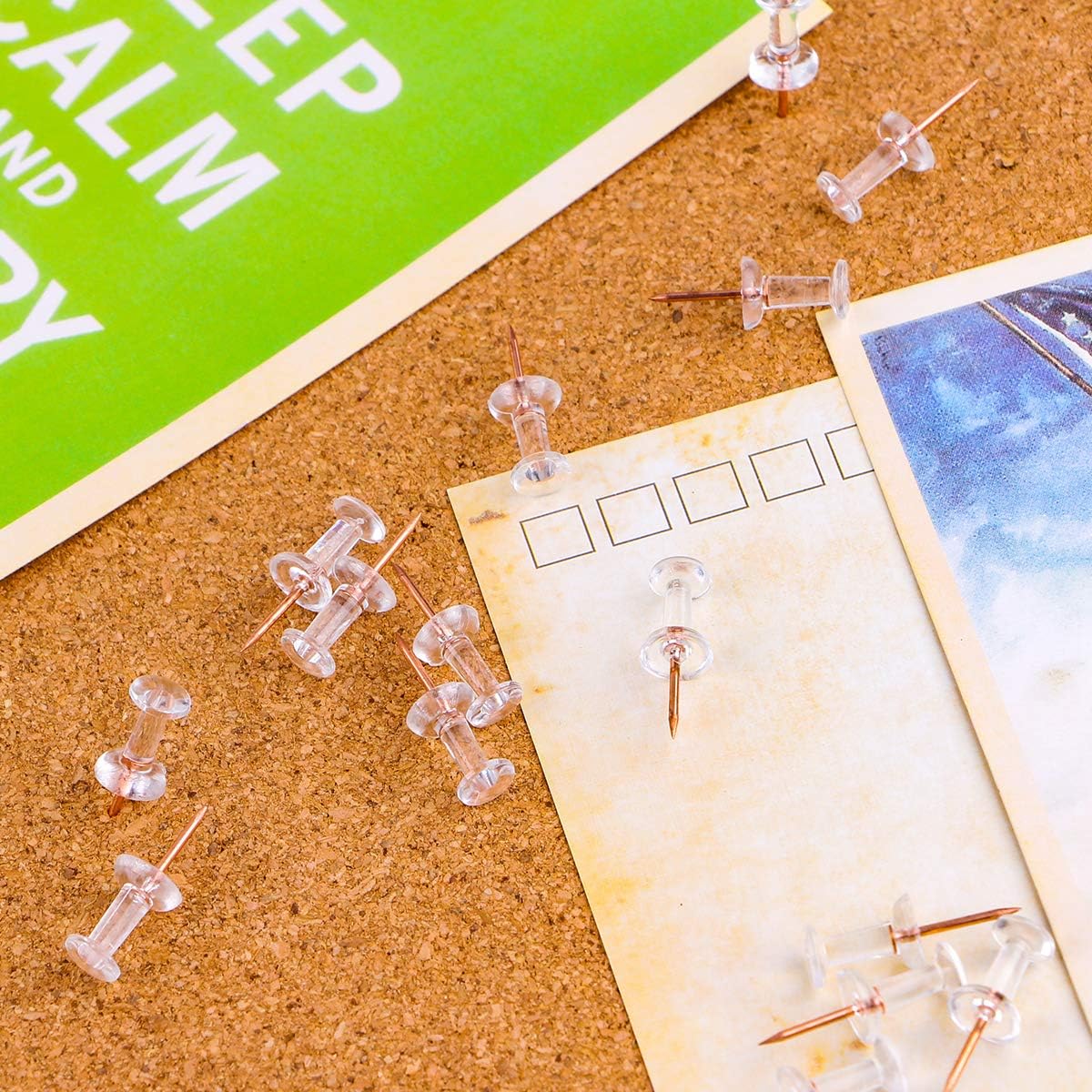 Yalis Push Pins 600 Count, Standard Rose Gold Pins Clear Thumb Tacks Steel Point and Clear Plastic Head (Rose Gold)