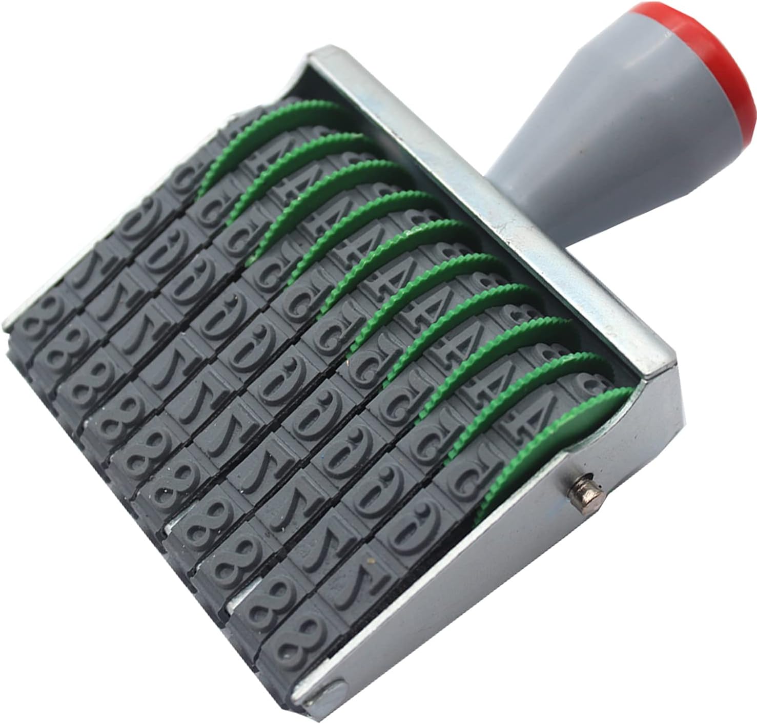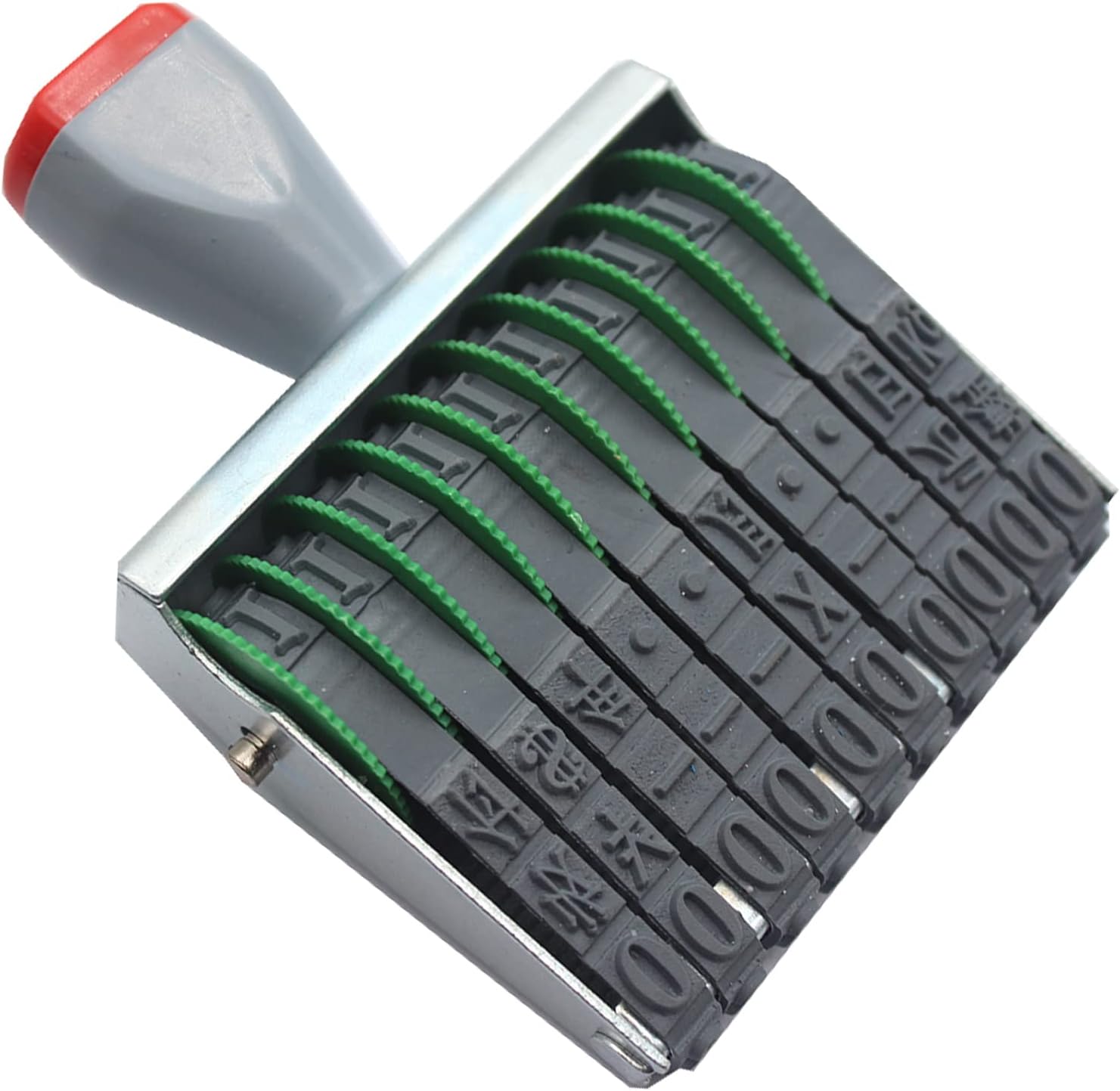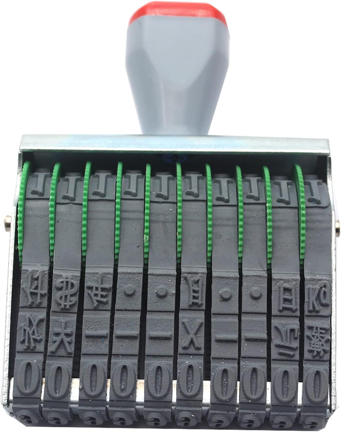 Business Stamps,ZENG 10 Digit Changeable 0-9 Numbers and Symbol Numbering Stamp,Date Stamp,Rubber Stamp,Ink Stamps,Imprint Size 67 x 7 mm-Gray Red Multicolor Blend