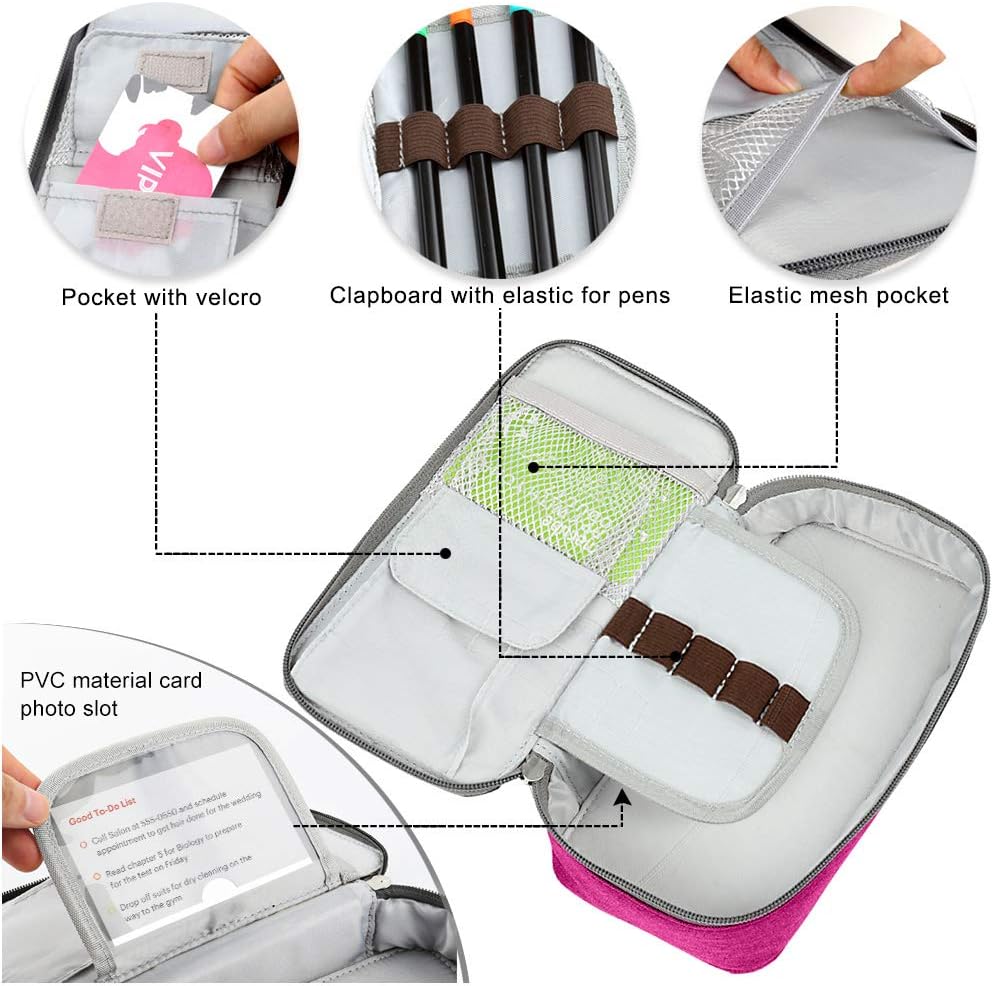 Homecube Large Capacity Pencil Case Oxford Cloth Bag Storage Pouch Marker Pen Pencil Cute Stationery Organizer Bag Holder with Zipper for Middle High School & Office Boy Girl Teen - Rose Red