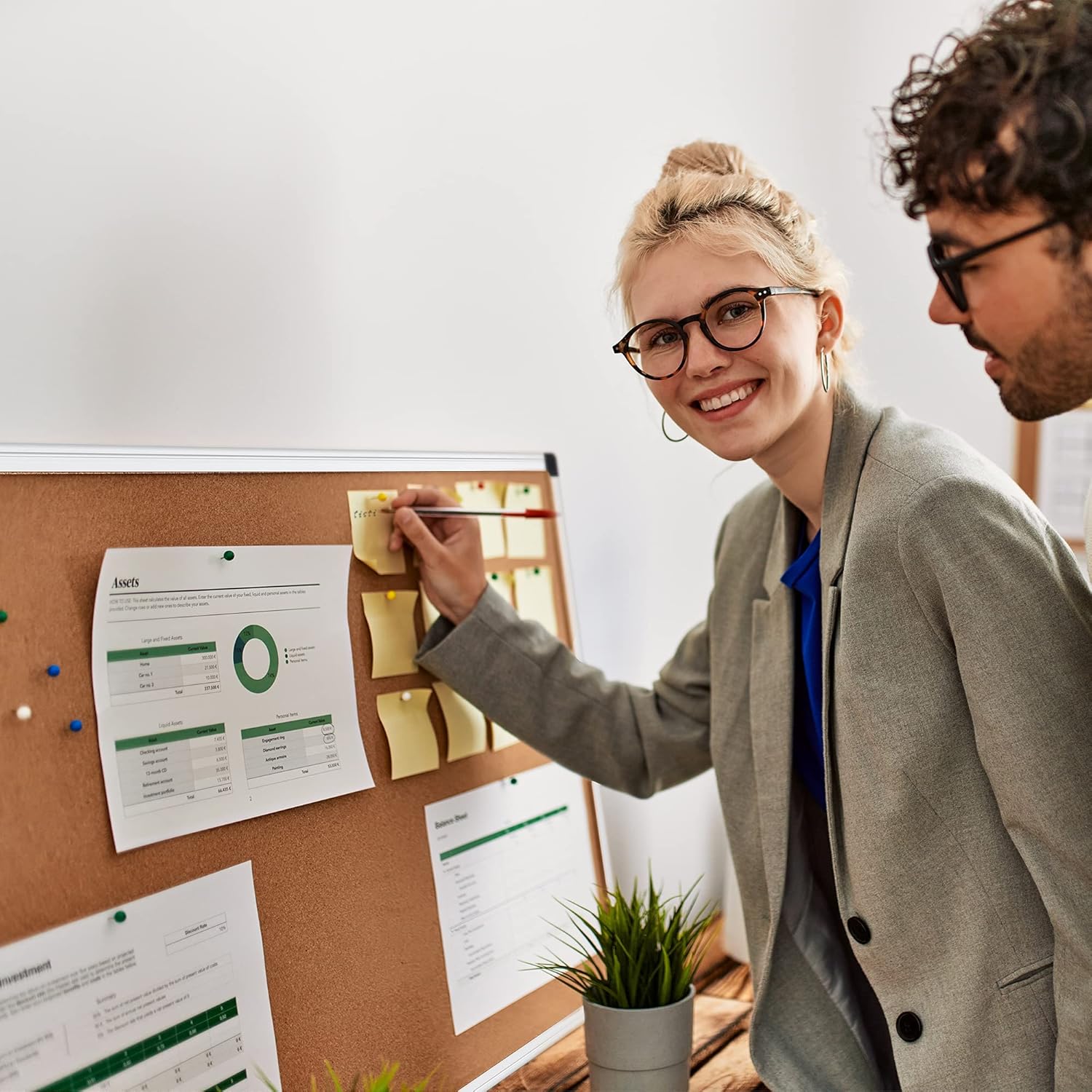 - Cork board for pinning documents, notes, pictures,reminders, and more at home or at the office