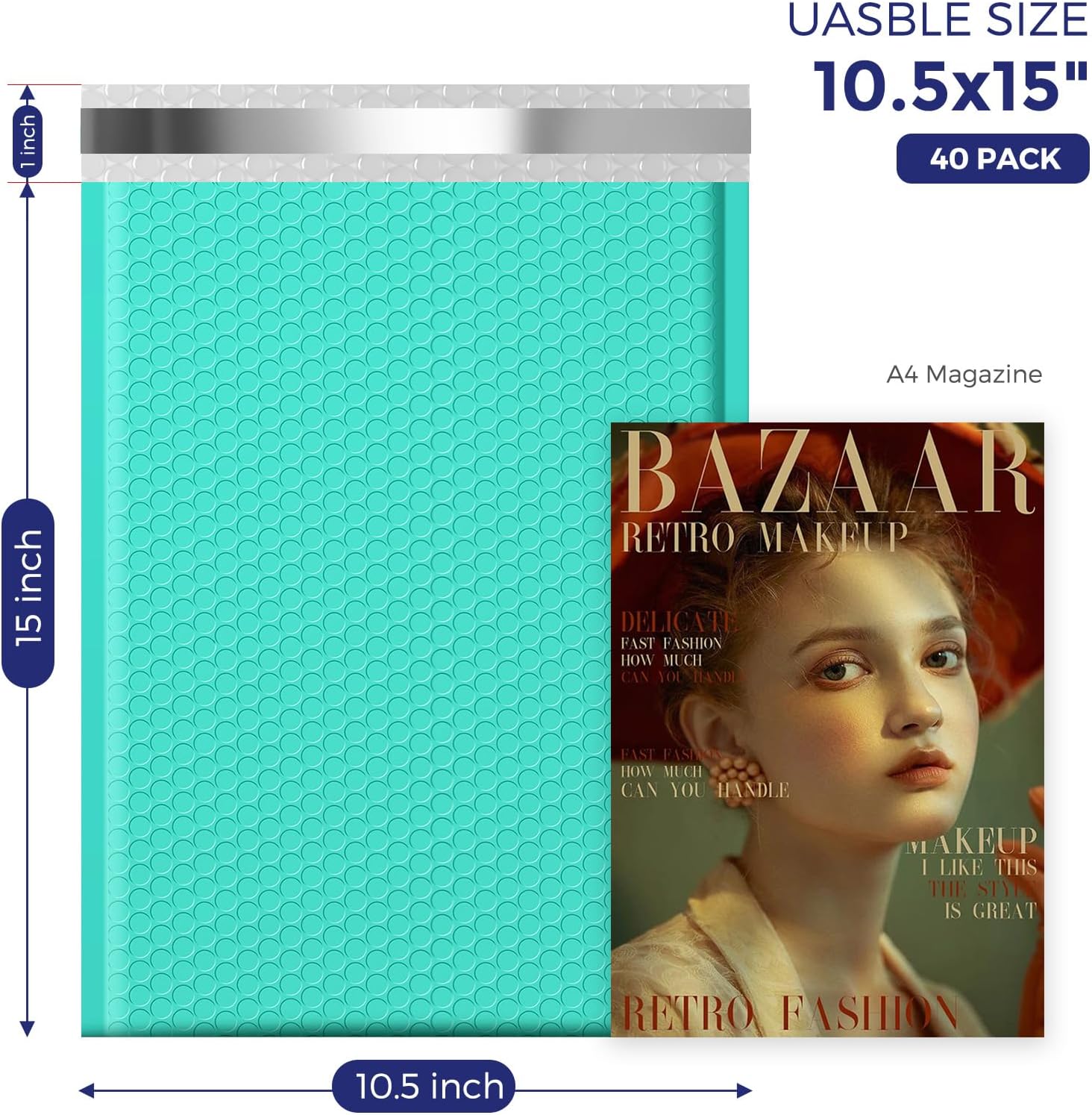 - 【Cushioning Bags】The teal bubble mailers are lined with 80gsm bubble with unique air cellular layers and all-round strong air bubble technology, these poly shipping bags are the perfect choice for small business.