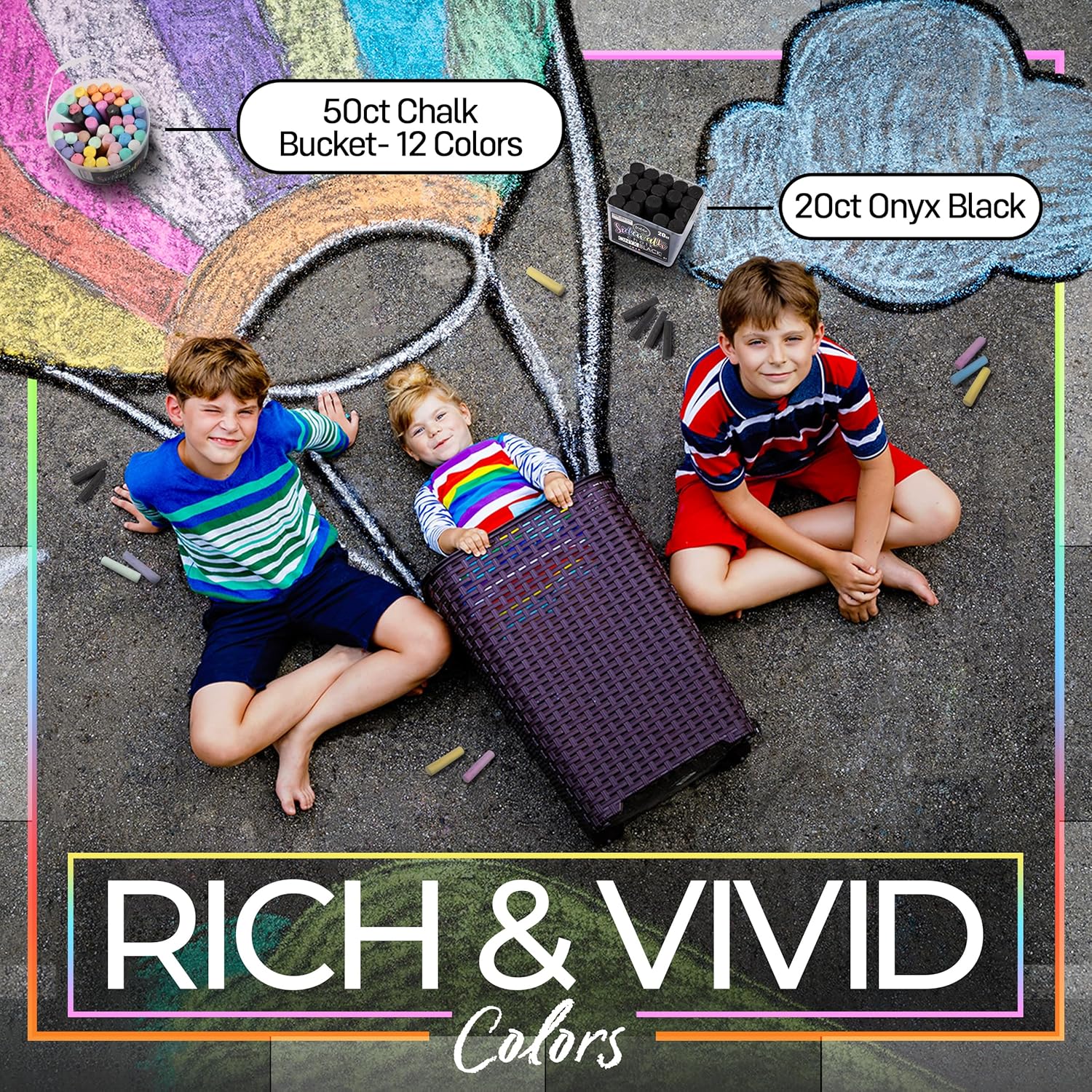 - Vibrant Street Art: Dive into a colorful world with our 50-piece chalk set of bright, multicolor sidewalk chalk. Whether it's art or just fun, this street chalk is your go-to for vibrant sidewalk creations. This sidewalk chalk non toxic pack is perfect for coloring and drawing, let your imagination run wild