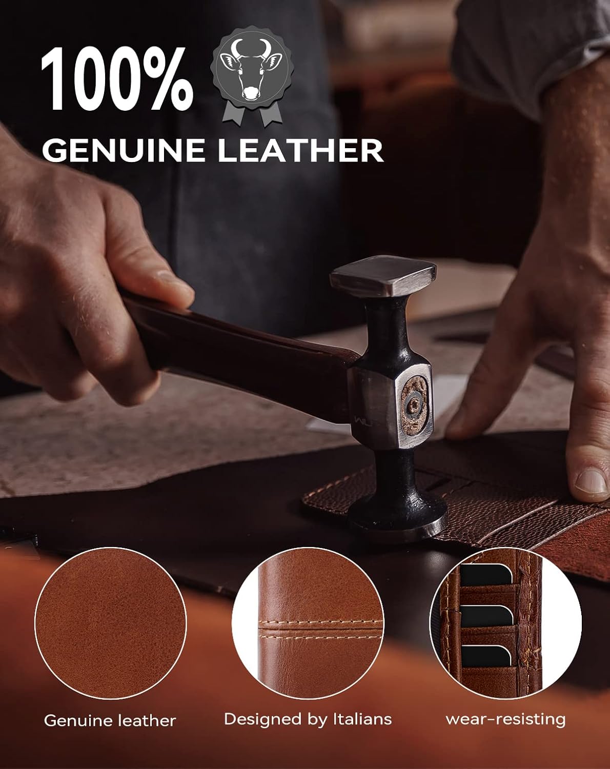- Genuine Leather: Crafted from premium cowhide leather, our wallet is soft and smooth to touch. The exquisite stitching process and design give it a sophisticated look. Whether you're holding it in your hands or slipping it into your pocket, it feels comfortable natural without any bulk or discomfort