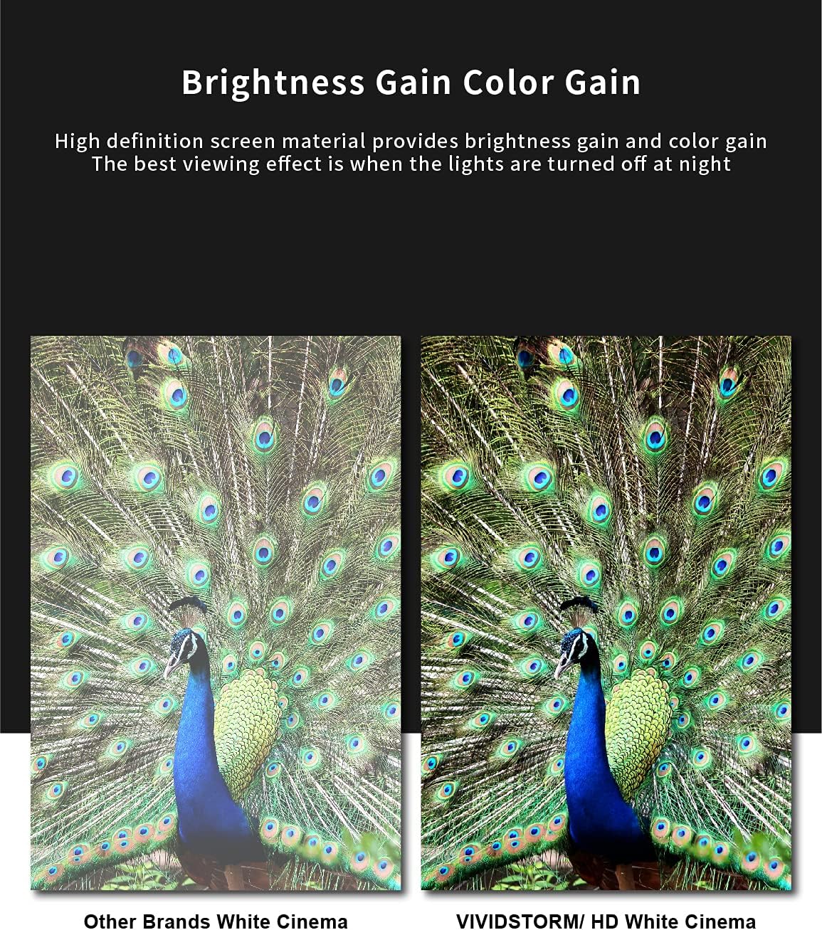 - ▶【The perfect visual effect 】The Screen size;72-inch Diagonal:16:9 Aspect Ratio;Standard View Area :62.76"Wx35.28"H;G.W.(Ibs):52.91;Screen Material:WHITW CINEMA PVC; 1.1 Gain for a Vivid Viewing Experience from 160 Degrees ;Projector Throw Type: ONLY compatible for Normal THROW PROJECTOR; Support 8K/4K Resolution Ultra HD & Active 3D Ready; Offer 110V voltage;