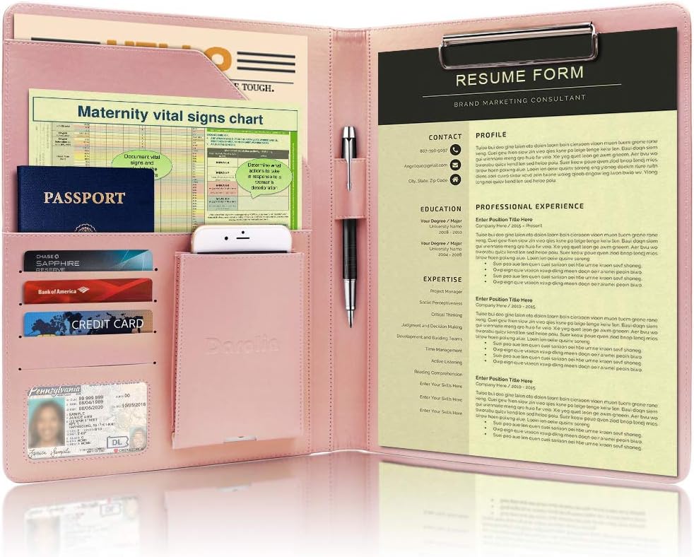 Darolin Business/Resume Padfolio Portfolio Folder with Letter/A4 Size Clipboard, Interview/Conference/Legal Document Organizer, Premium Portfolio Professional Case, Padfolio for Women/Men-Rosegold