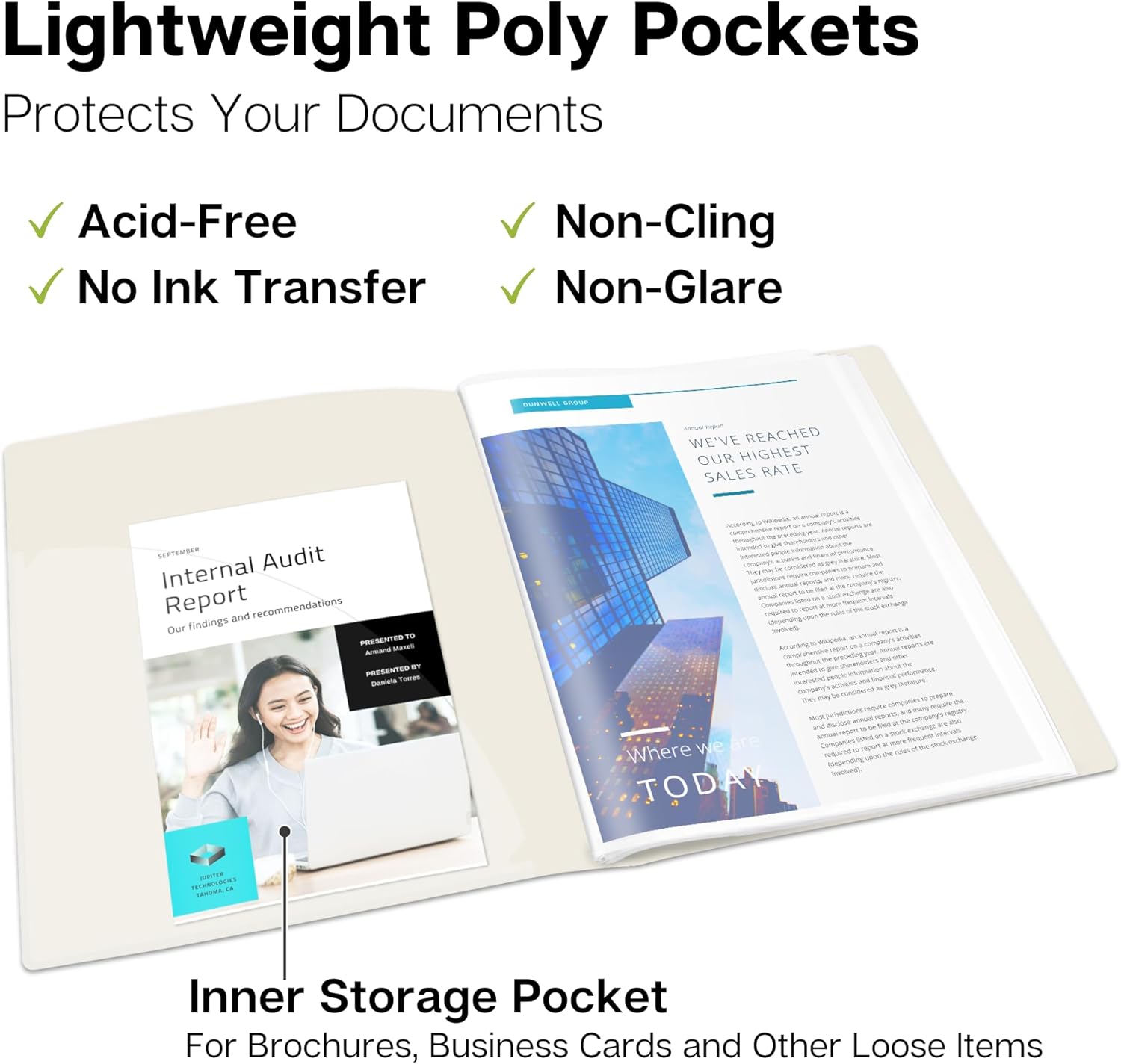 - DURABLE CONSTRUCTION, BUILT TO LAST: Premium plastic covers, reinforced binding resist tearing. Non-glare poly sleeves are dirt and moisture resistant, for a professional appearance every time.