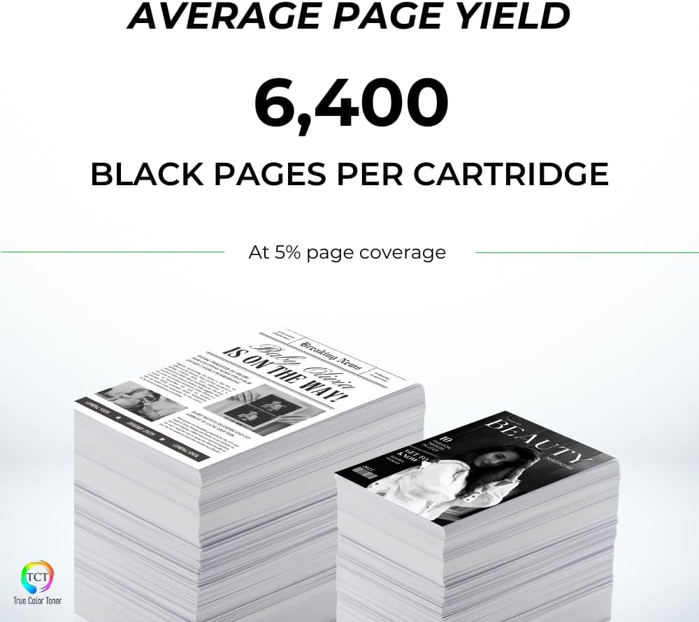 - Page Yield: Up to 6400 pages at 5% coverage (Letter/A4) per cartridge.