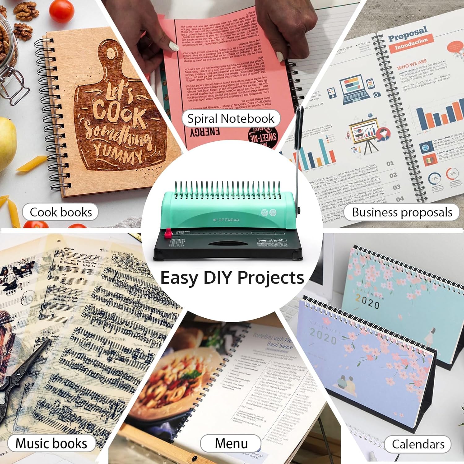 - 【High Efficiency & Time-Saving】OFFNOVA Comb Binding Machine punches up to 10-12 sheets of 80g (≤20lb) paper, 2 sheets of 230g (≤85lb) cover/textured paper, or 1 sheet of 5-12mil PVC cover. Max binding capacity: 450 sheets with 2" comb binding spines (not included). Perfect for high-volume projects, providing quick and professional results.