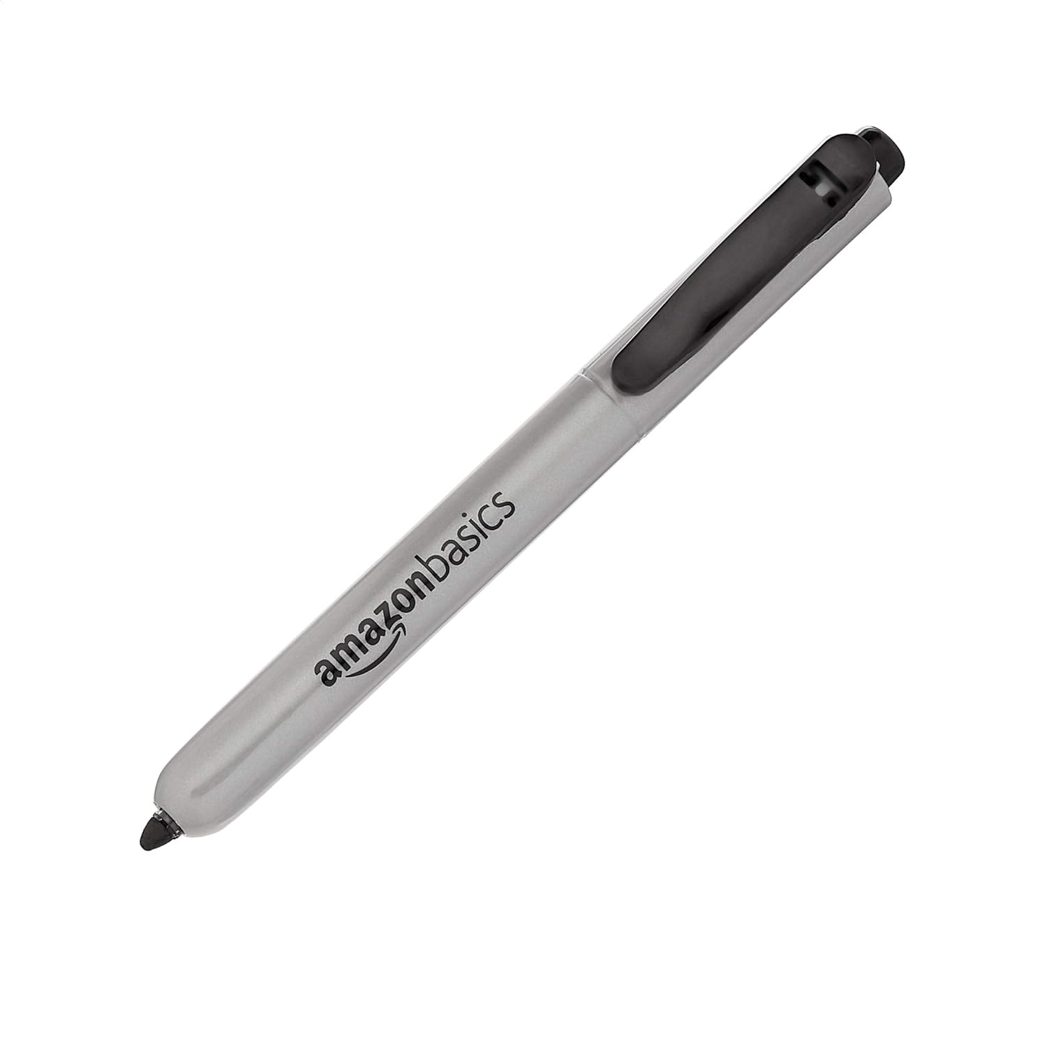 Amazon Basics Retractable Permanent Markers, Versatile Art Supplies for Home, School, and Office Use, 12 Count, Black