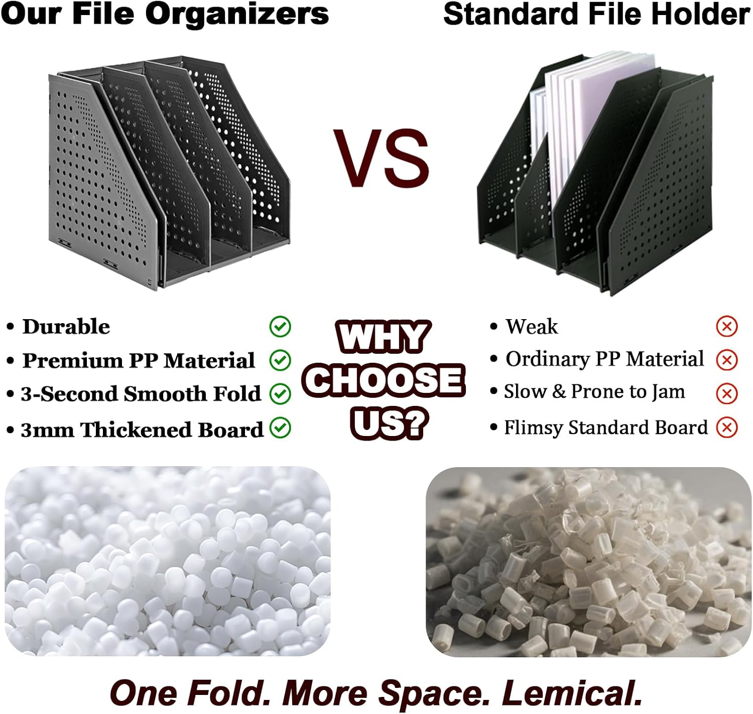 - ♥OPEN SLOTS DESIGN --- Compared to regular file folders, Lemical this file holder has an open slots design with no width limitation. You can either put A4 plus paper, big magazines in it, or store other large-sized files box to keep your desk neat