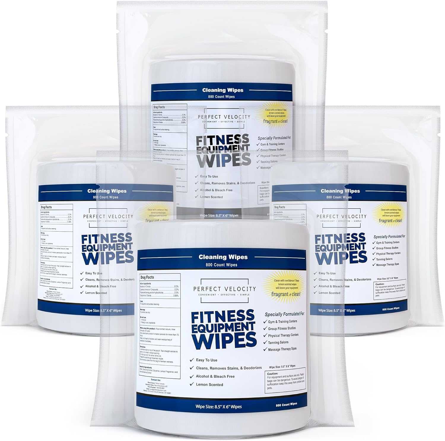 Fitness Gym Equipment Wipes - 4 Rolls of 800 Pre-Moistened Cleaning Refill Wet Wipes - For Upwards and Downwards Dispensers