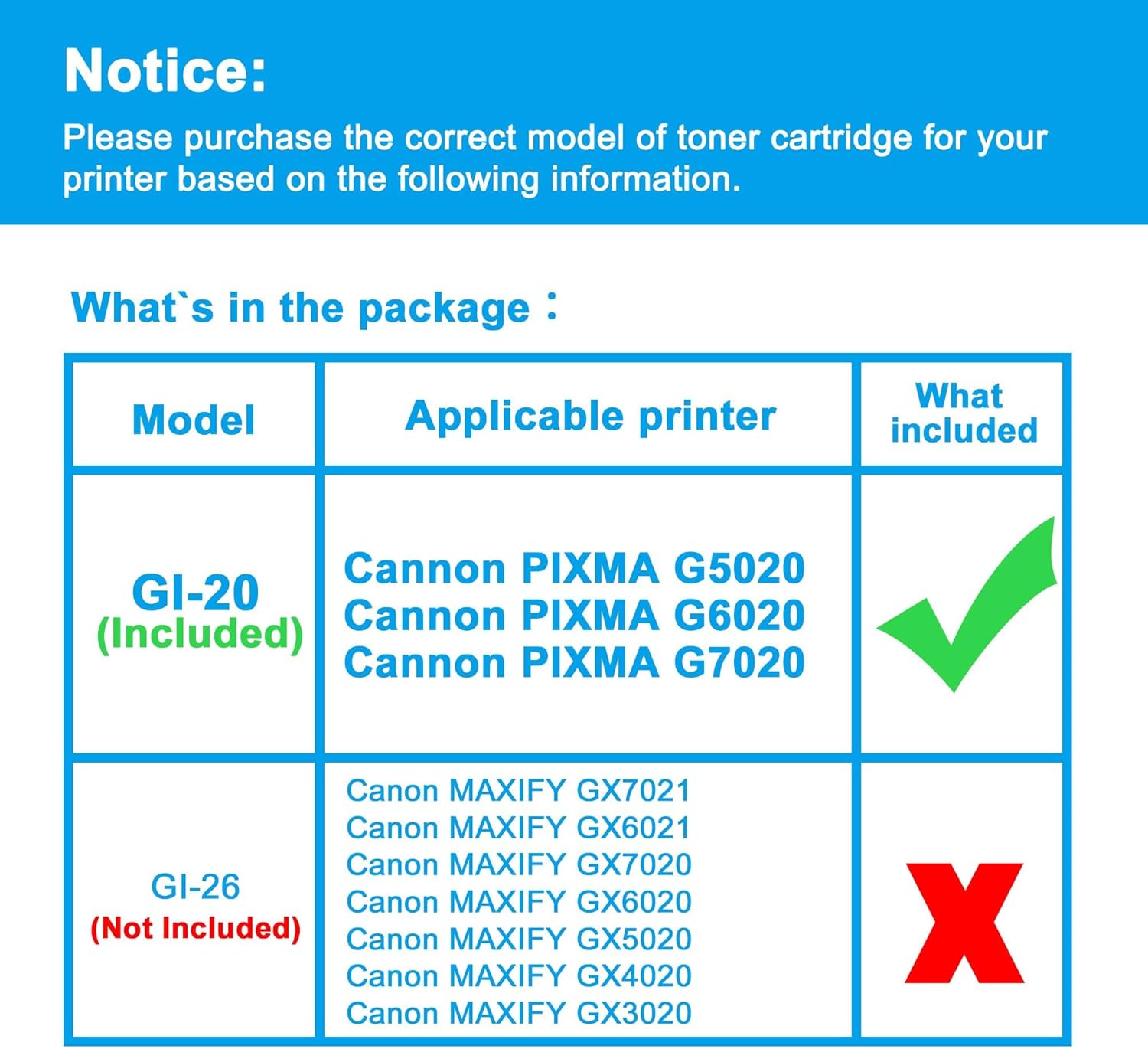 - Compatible Printers: Replacement for Canon PIXMA G5020 G6020 G7020