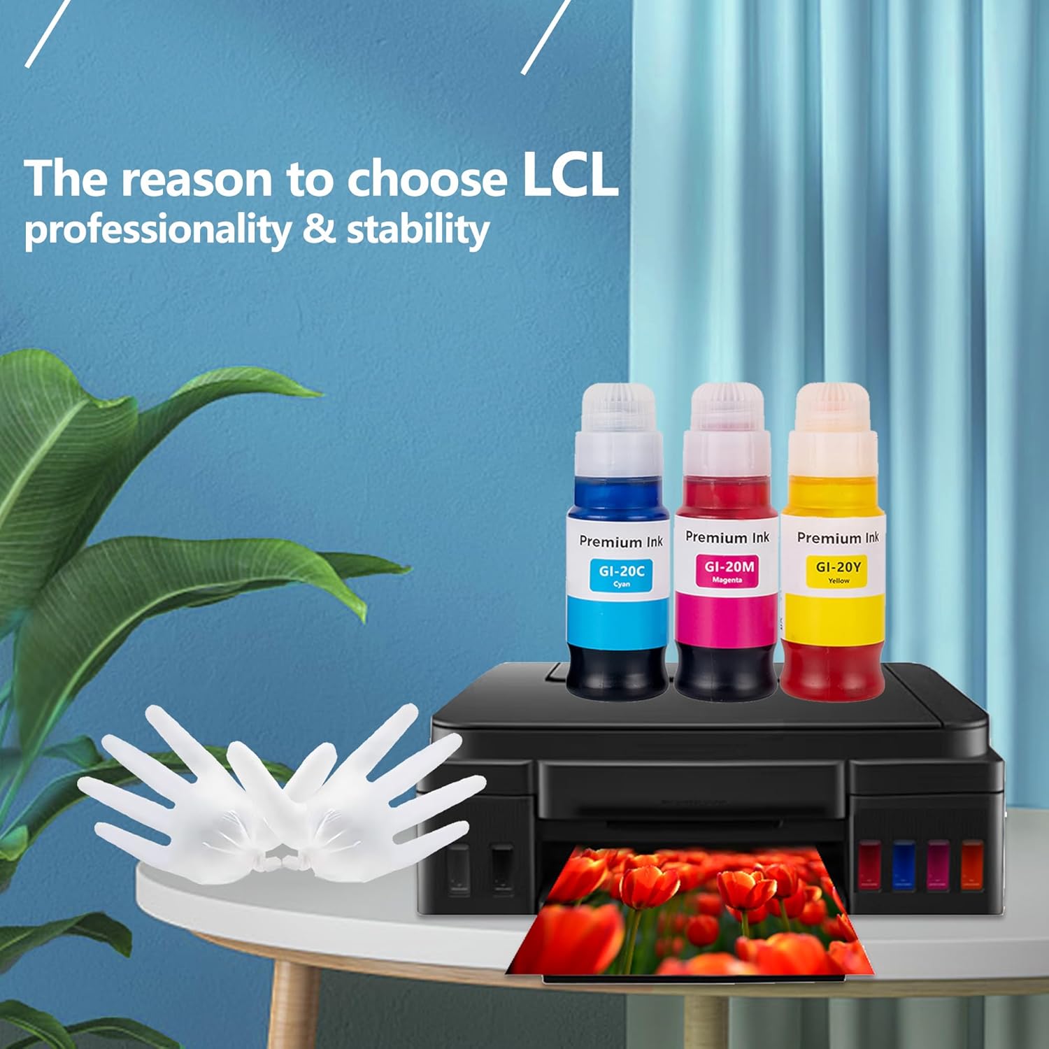 LCL GI-20 GI20 Ink Bottles Replacement for Canon 20 GI20 GI-20 Ink Refill Bottles Compatible with Canon PIXMA G5020 G6020 G7020 Printer (3-Pack,Cyan Magenta Yellow)