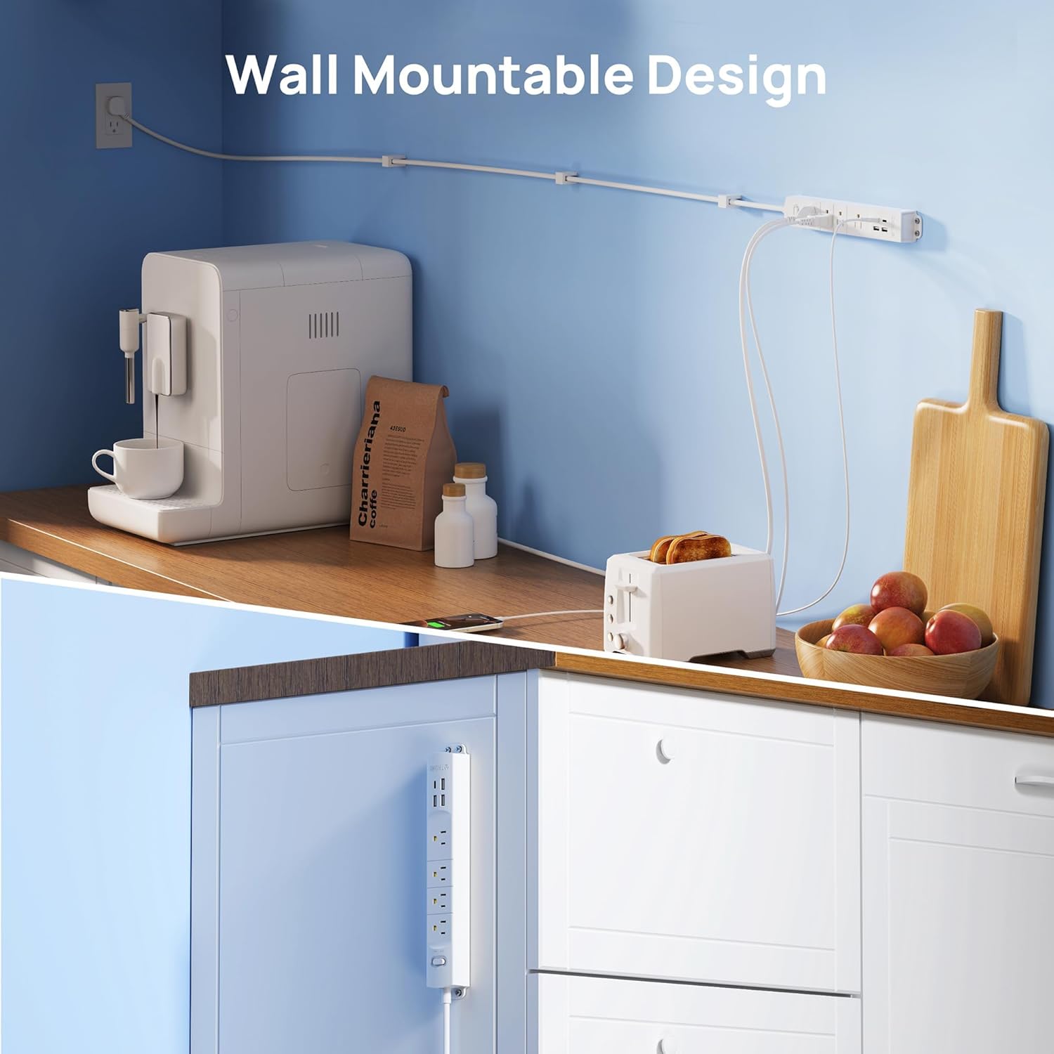 - Ultra Flat Plug & Wall Mountable: The low-profile flat plug design is great for stashing under or behind furniture. Four screw-mounting tabs allows the power strip to be securely installed on workbenches, behind tv, garage, bedside, under counters/desk/cabinet, dresser.