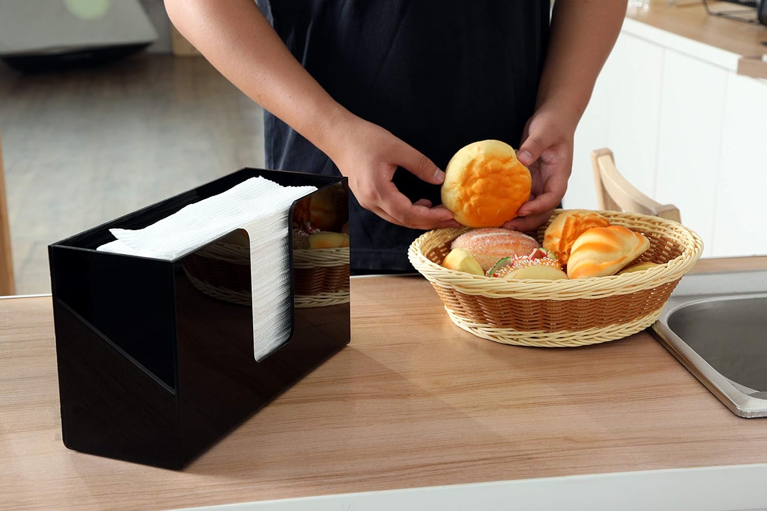 - VERSATILE PRODUCT:The paper towel dispenser is made of high quality acrylic,sturdy and durable,simple and modern appearance with one-piece construction that will brighten any restroom kitchen dining tables,restaurant,club,offices desk,classroom etc.Wall hanging design helps save space and help keep workspace neat and tidy also easy to clean