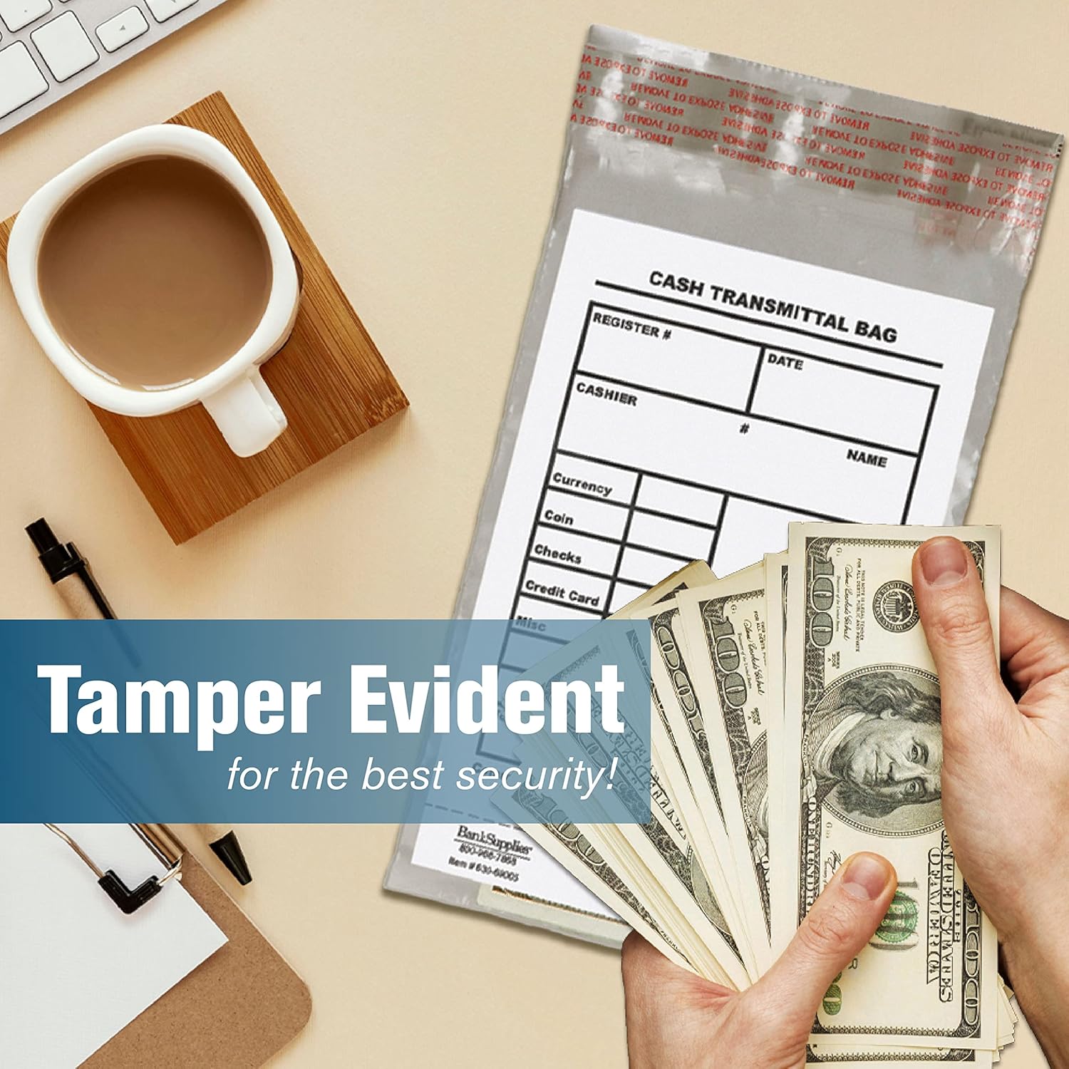 - DIMENSIONS: The size of this cash register bag measures 6 inches in width and 9 inches in height and they come in a pack of 100. Utilize in any business with tamper evident security to make money safer and more portable for your employees. (Cash and Coin NOT included)