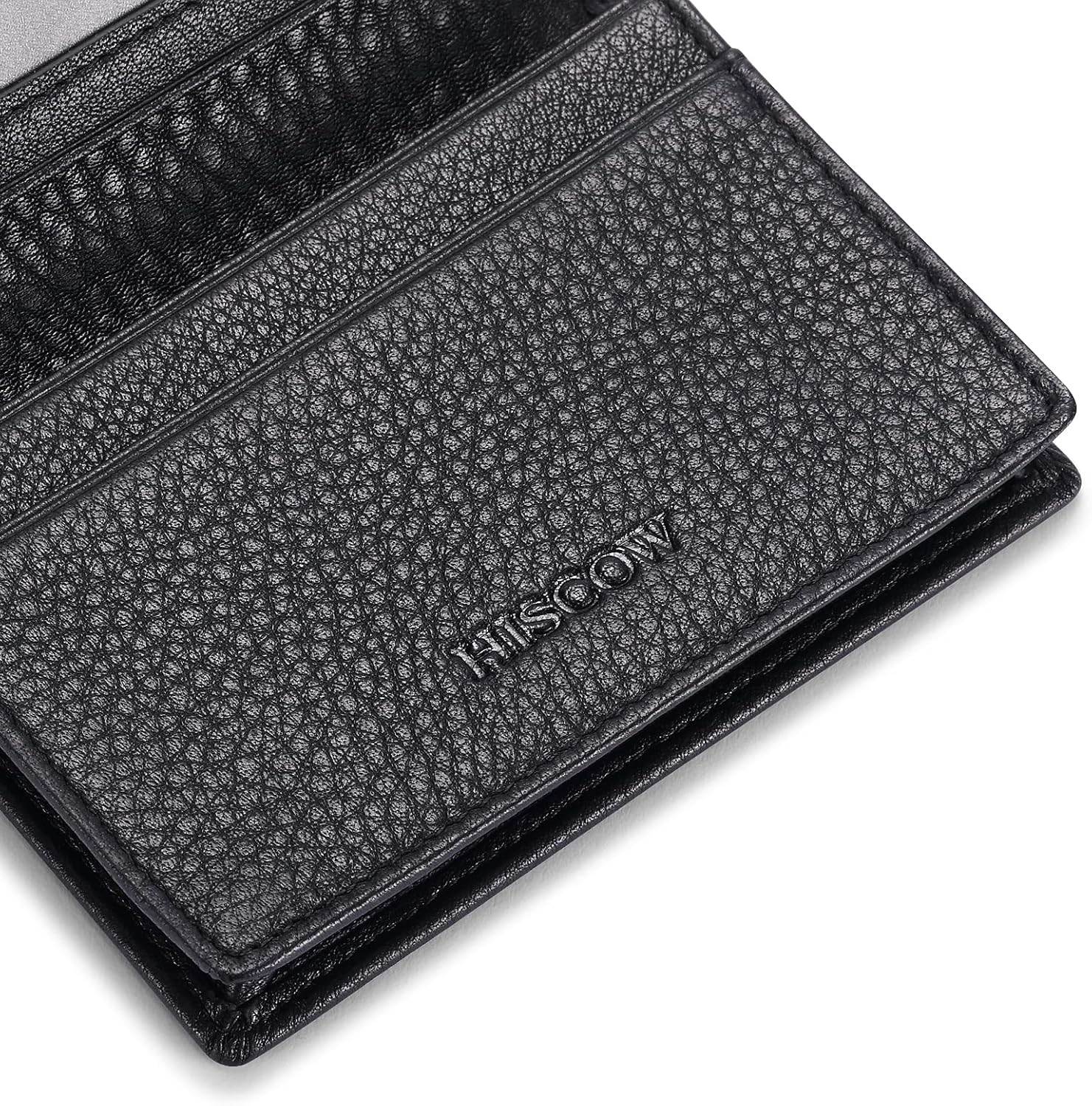 - What You Get: HISCOW Leather Business Card Holder, in an exact-fitting and classy matte-black box. Welcome guide, our worry-free 12-month warranty and friendly customer service