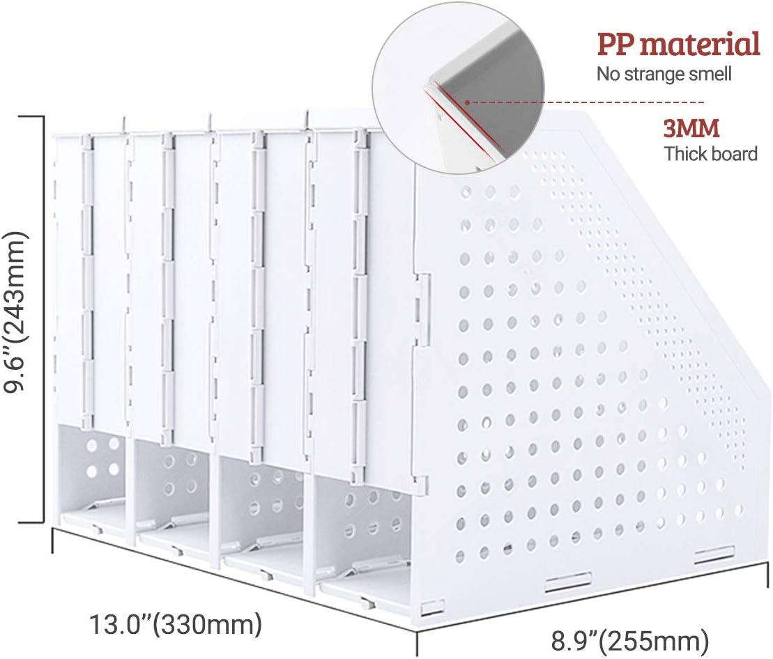 SAYEEC Collapsible Magazine Holder Plastic Desktop 4 Compartment File Desk Magazine Organizer Vertical File Divider Sorter Storage Document Organizer for Office Home School Gray