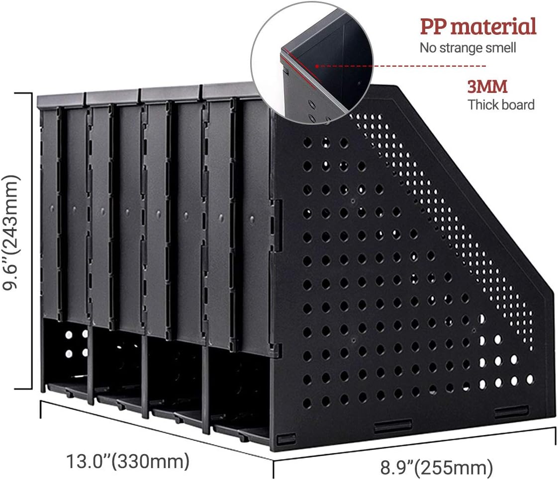 SAYEEC Collapsible Magazine Holder Plastic Desktop 4 Compartment File Rack Magazine Organizer Vertical File Divider Sorter Storage Document Organizer for Office Home School Black