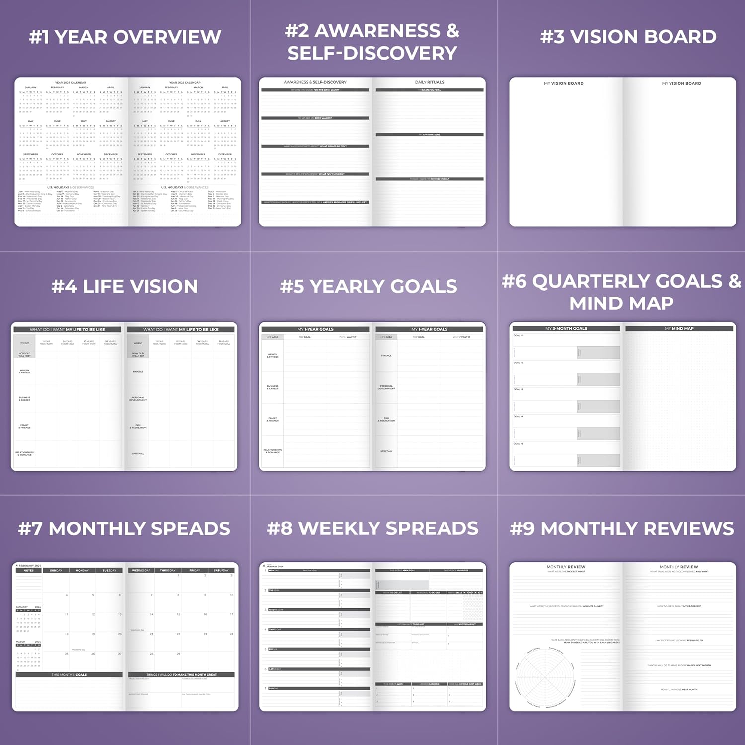 - CREATE A VISION FOR YOUR FUTURE, SET GOALS & START PLANNING – This goal-setting planner 2025 will help you create a vision for your life, define your global goals, and incorporate them into your agenda.