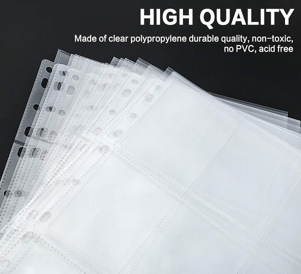 Trading Card Sleeve Pages, PANDRI 100 Pack 9 Pocket Trading Card Storage Album Pages 11 Holes Fit 3 Ring Binder