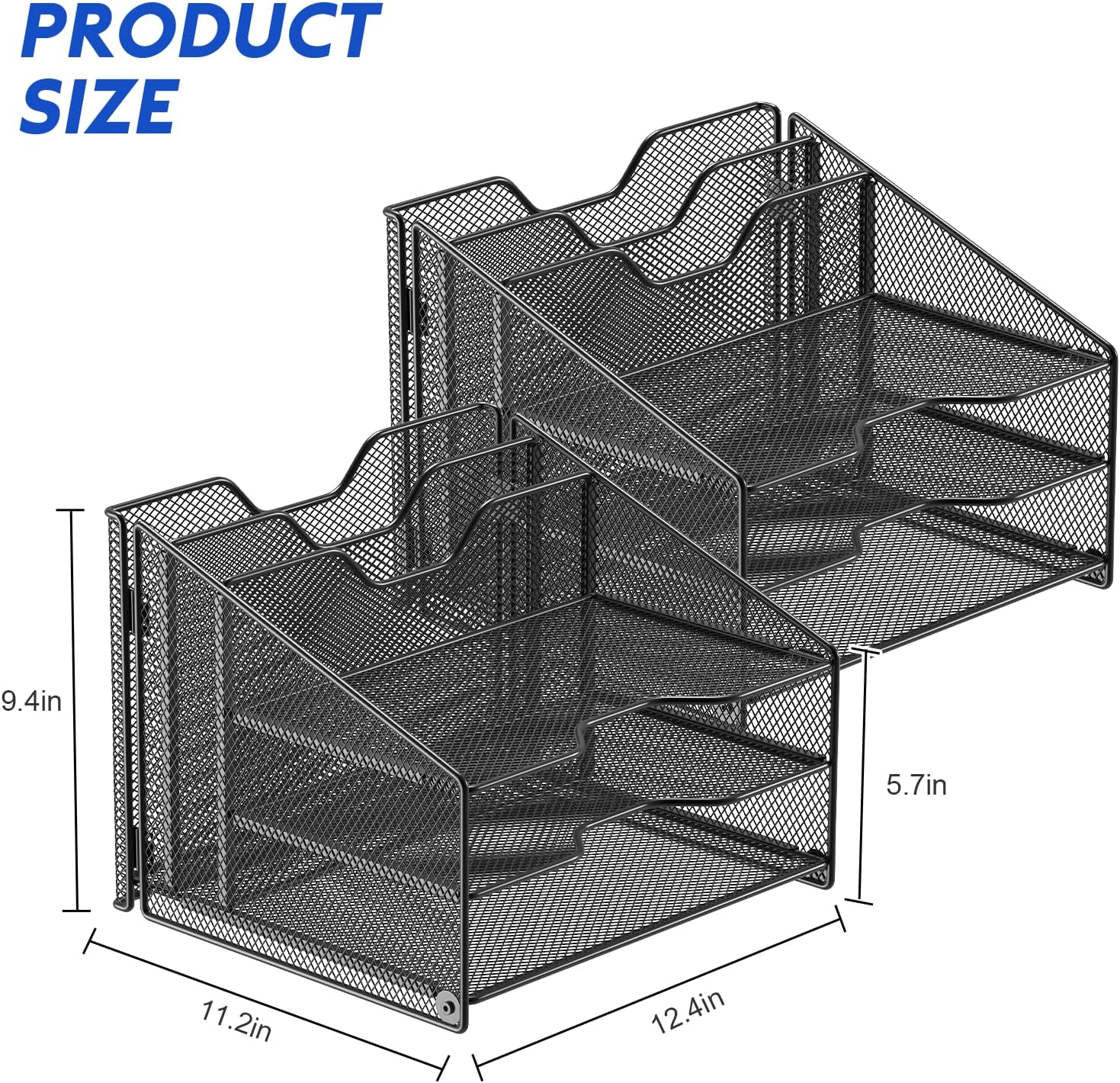 Samstar 2 Pack Mesh Desk File Organizer Letter Tray Holder, Desktop File Folder Holder with 3 Paper Trays and 2 Vertical Upright Section, Black